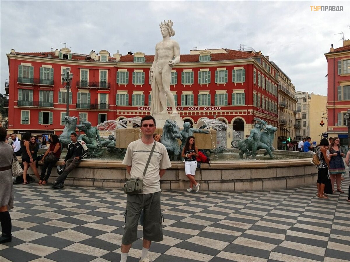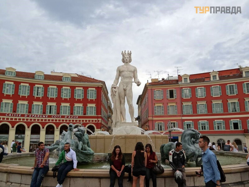 Pasivaikš č iojome Rue Saint-Francois de Paul ir atė jome į Place Massena. Paž iū rė jome į „Saulė s“ fontaną su Apolono statula, neseniai grį ž usia į savo vietą , „_blank“>