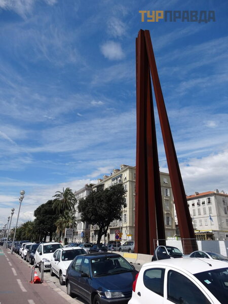 А мы по набережной имени США, мимо странного монумента из нескольких ржавых столбов,