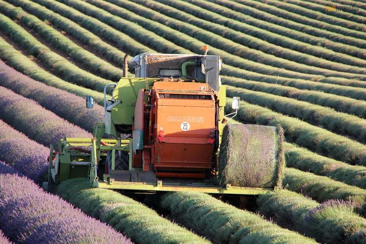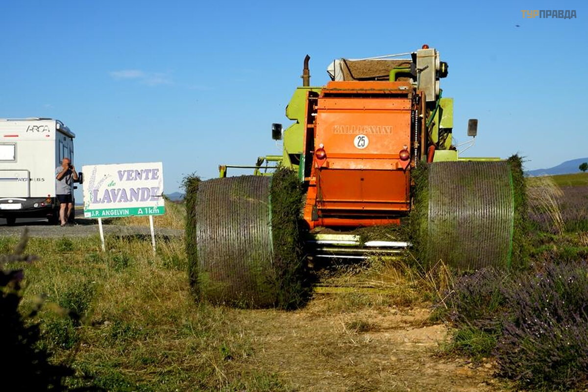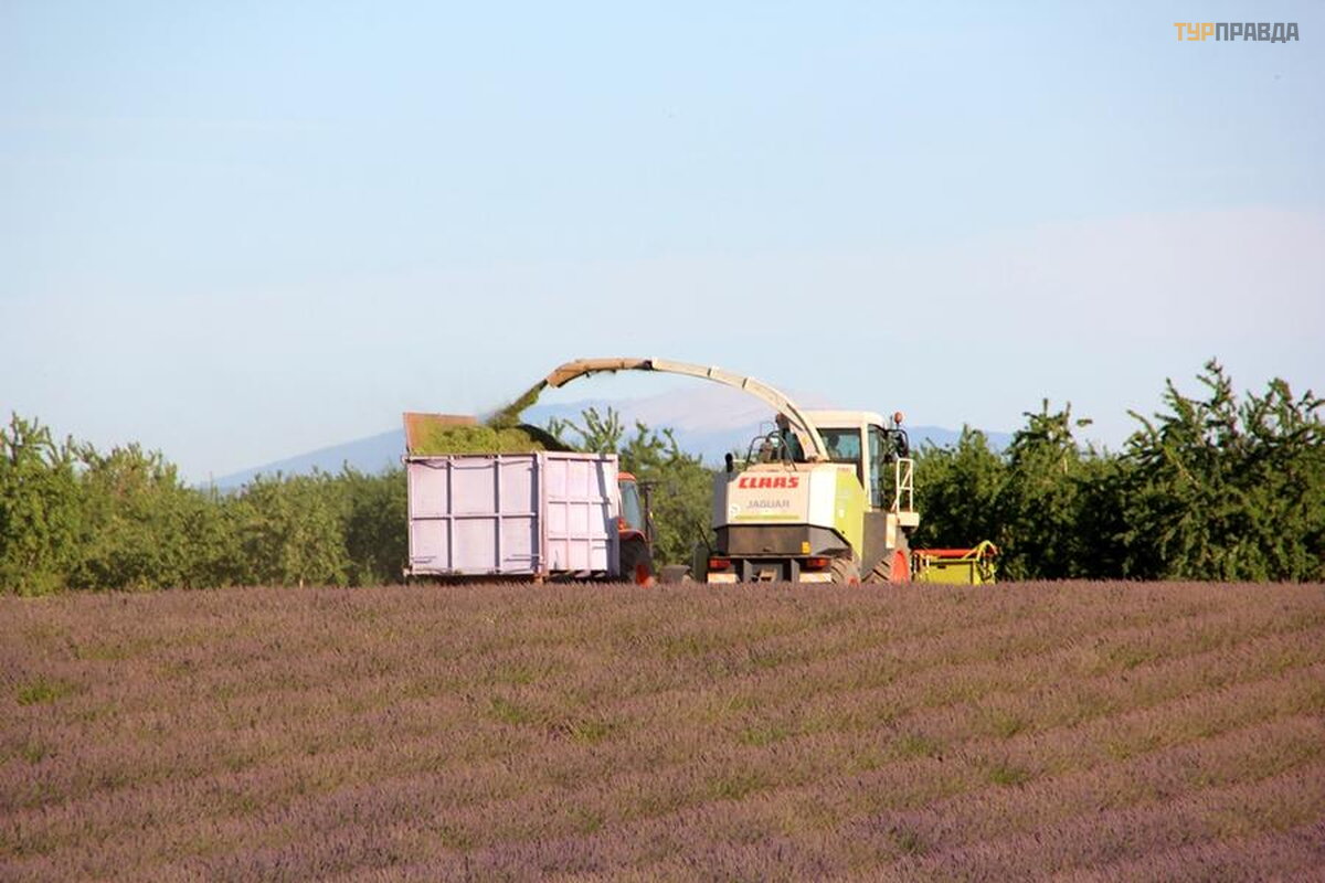 Ryte mane paž adino kombainas, atė ję s pjauti levandų . Kaip pjauti? Ji dar než ydė jo, ar ne? Kombainininkas man pasakė , kad tai buvo teisinga. Jei ant š akos praž ydo viena ar dvi gė lė s, vadinasi, ji jau subrendo, o turistams yra specialių vietų , kur levandos ž ydi, bet rinkti nebetinka. Č ia yra subtilybė s. Nufotografavau visą levandų kolekciją ir saugojimo tinklą . Aplankiau saugojimo vietą suktinukų pavidalu, o kur tik levandų ž iedynas.