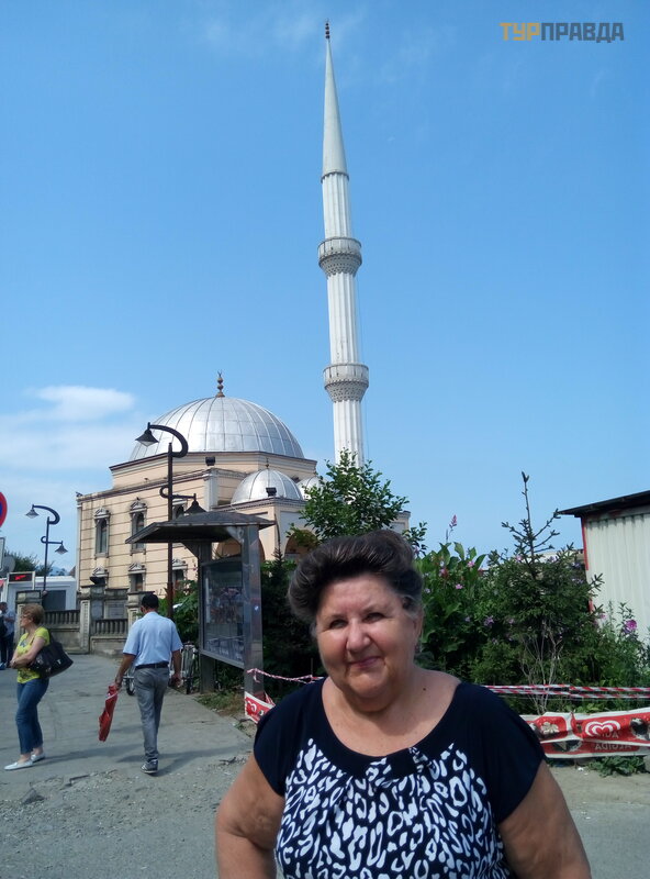 Mama iš pradž ių vaikš č iojo klusniai nuoš aliai (ji netikė jo mano nuotykiu). Tač iau pasienio punkte ji atgijo, o po penkių minuč ių gruzinų pasienieč iai jau susipaž ino su linksma pagyvenusia ponia, kurios vyras č ia saugojo sieną , kai jie dar nebuvo ž emė je. Pliaukš telė jimas į pasą , ir mes už sienyje. Dar vienas antausis ir mes Turkijoje! Eidama koridoriumi į nirtingai prisiminiau visą savo menką anglų kalbą . Nereikia – klausimų nekyla. Sienos kirtimas truko apie 10 minuč ių , o mama pirmą kartą gyvenime į savo jaunystė s vietas paž velgia iš jai netikė č iausio taš ko – iš pač ios meč etė s, į kurią jiedu su tė č iu ž iū rė jo beveik dvejus metus. pasienio bokš tas.