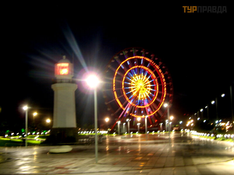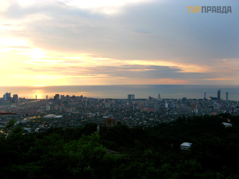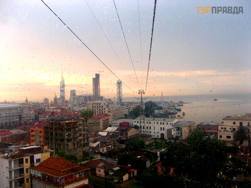 Lietus nesiliovė , bet kaž kodė l nenorė jome iš vykti iš Batumio, bet laikrodis rodė jau 18 val. Intuicija mums š nibž dė jo eiti į restoraną netoli jū rų uosto iš gerti puodelį tikros, ant smė lio už virtos kavos – ir į vyko stebuklas: jau 18:35 lietus nuė jo už kalnų , jū ra buvo visiš kai rami, o mes su palengvė jimu atsidusę s iš vyko susipaž inti su atsinaujinusiu Batumiu. Už kopdami į apž valgos aikš telę ir nusileisdami ant krantinė s sugaiš ome kiek maž iau nei valandą , tač iau š is laikas tikrai nebuvo praleistas veltui – į rodymas nuotraukoje). Keltuvo bilietas vienam asmeniui kainavo 5 GEL.
