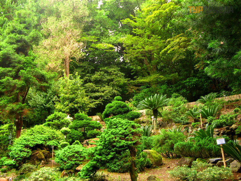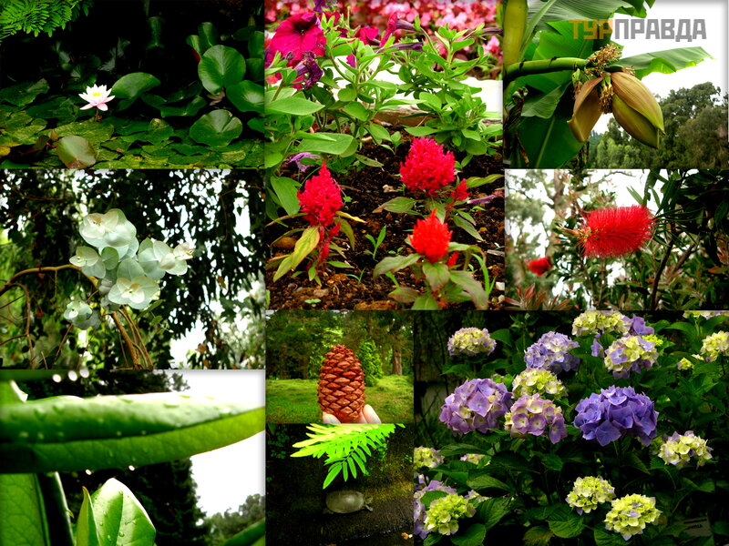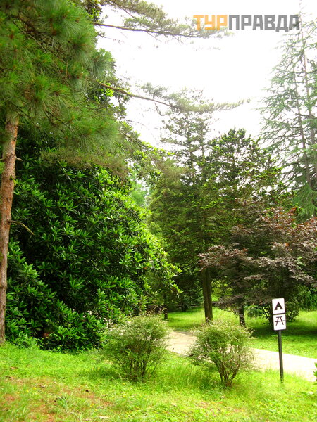 11:00 mū sų vairuotojas iš leido mus prie vartų į Batumio botanikos sodą ir paž adė jo mus pasitikti iš kitos pusė s. Už.8 GEL ž mogui į lindome į graž ų ž alią parką su tiek daug į vairių augalų , kad nesiimsiu jų iš vardyti. Pasakysiu viena: tai velniš kai graž i vieta). Tač iau gamta nusprendė perpildyti mū sų meteorologinę tvarką – o geriausias, kaip ž inia, yra gė rio prieš as – ir 12:30 virš utiniame parke su vaizdu į jū rą mus už klupo tipiš kas subtropinis lietus. Tač iau tai nesugadino mū sų nuotaikos: trumpais brū kš niais, kvė puodami aš tria ž aluma parko gaiva, nubė gome pas savo rū pestingą vairuotoją , kuris 13 val. iš važ iavime iš Botanikos sodo į sodino į sausą automobilį .