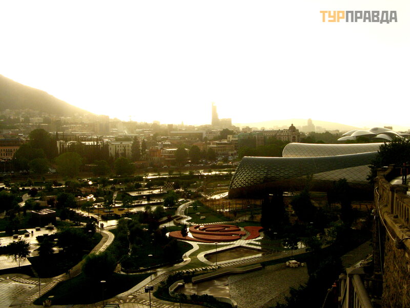 Nuo vartų nuvykome į Avlabarą – vieną seniausių Tbilisio rajonų , etniš kai armė nų rajoną . Š tai vietiniame turguje nusipirkome pomidorų po 2 larius už kilogramą , o agurkų – už.80 tetrių . Netoli Avlabar metro stoties prie fontano pasukome ant krantinė s. Nusileidome ne iki pač ios krantinė s, o ė jome keliuku, einu palei kalną , ant kurio, š alia mū sų hostelio, yra prezidento rezidencija. Vietos į sitikinimu, tas, kuris nusiplauna akis vandeniu iš Verkių kalno, viską labai aiš kiai matys. Kelio viduryje, nes trū ko pė sč ių jų š aligatvio, turė jome grį ž ti į metro ir pereiti į kitą pusę , nuo kurios atsivė rė vaizdas į parką prie Taikos tilto ir naujojo teatro.