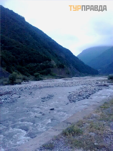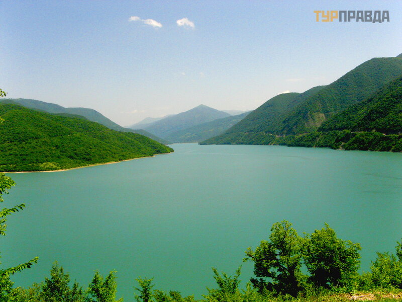 Kelias buvo paž į stamas, bet buvo į domu paž velgti į viską iš kitos pusė s. Taigi, spė jome pamatyti garsų jį Ž invalio ež erą , kurio tamsoje pakeliui į Gruziją nepastebė jome. Paž iū rė kite, koks š varus ir skaidrus Aragvi teka tarp kalnų . Jos kontrastas su Terek buvo ypač ryš kus – jis buvo tamsus, niū rus ir vietomis atvirai neš varus.