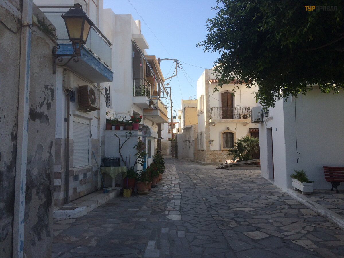Pradž iai nusprendė me skubė ti į Ierapetrą . Tai maž as senamiestis, yra pieč iausias miestas Europoje. Standartinis komplektas: siauros gatvelė s, krantinė su parduotuvė mis ir kavinė mis.