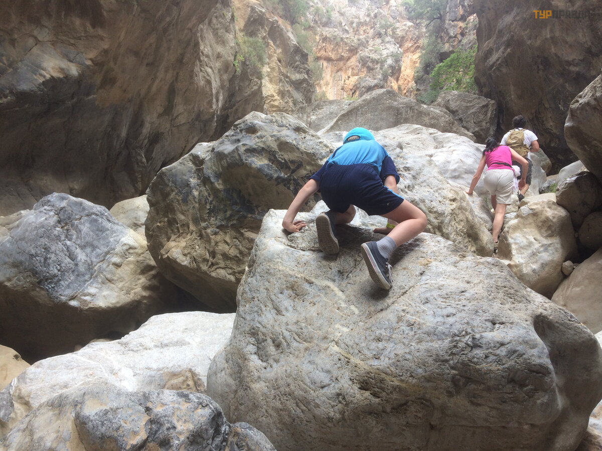 Vaikai praš ė , o paskui tiesiog reikalavo kalnų . Jie tikrai prisimena Alfemenos tarpeklį Rode. Netoli Ierapetros, anot interneto š altinių , gausu į vairių urvų ir kanjonų . Kai kuriems reikia bent minimalaus mokymo ir į rangos. Neturime nei vieno, nei kito. Nusprendė me pasiž valgyti po Sarakino tarpeklį .