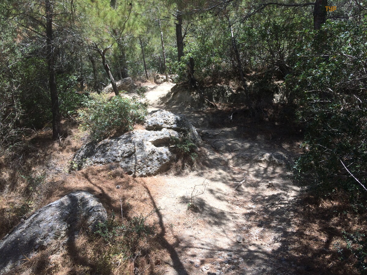 Nepajudė jome nuo pagrindinio kelio į tarpeklį , takas siauras ir neasfaltuotas. Niekas, iš skyrus mus, ten nebuvo. Aikš telių nematė me, tikriausiai visi eina š iuo taku, o mes ė jome pė sč iomis.