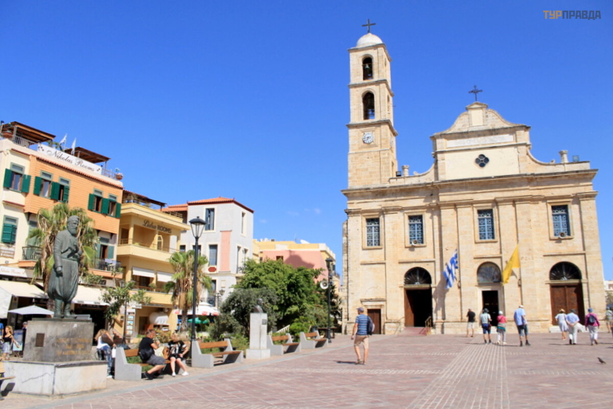 А на площади перед собором, среди прочих, можно увидеть скульптуру Агнастостиса Мантакоса, который водрузил греческий флаг над бастионом крепости Фиркас в честь присоединения Крита к Греции в 1913 году.