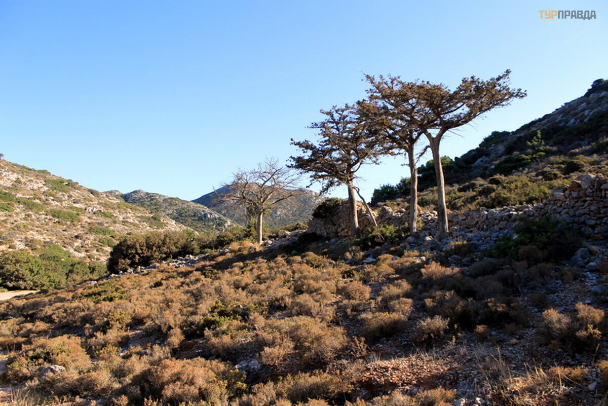 А еще здесь же начинается тропинка, спускающаяся к заброшенному монастырю Католико, который датируют V-VI вв. Путеводители говорят, что монастырь расположен в ущелье на отвесной скале и посвящен Святому Иоанну Отшельнику. Убедиться воочию нам в этом не удалось. Спуск-то мы к нему, конечно, начали, но добрались только до окруженной остатками живописной древней стены…