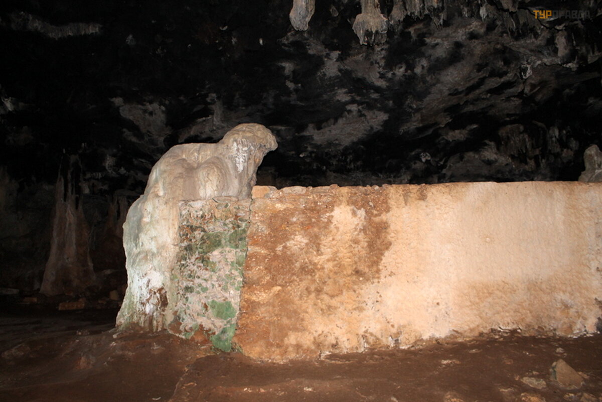 … пещеры Аркудиотиссы, что в переводе с греческого означает « Медведица» . Такое название пещера получила из-за сталагмита, находящегося внутри и напоминающего медведицу.