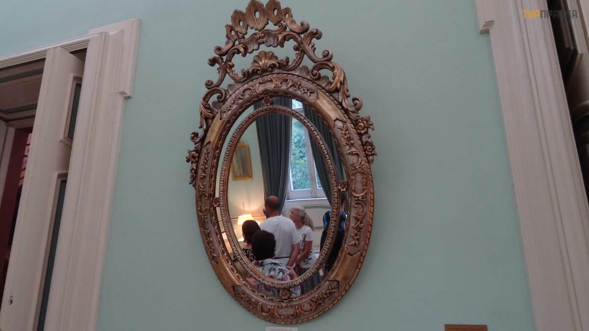 Ž iū rė dami į veidrodį , į kurį ž iū rė jo pati imperatorienė , visi ž iū rė jo ir kikeno, kiekvienas galvojo apie savo. Vaikš č iojome po parką