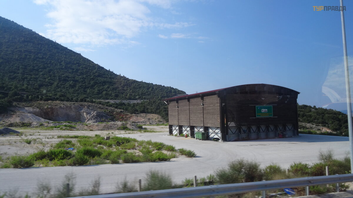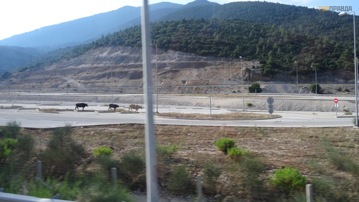 Kelias ė jo per kalnuotą vietovę , tada visi pastebė jo, kad augalija č ia visai kitokia, ne kaip Korfu. Ir palydovė patvirtino mū sų pasakymą , kad Graikijoje yra visko, ir net sniego, todė l kailiniai iš Graikijos yra normalu.