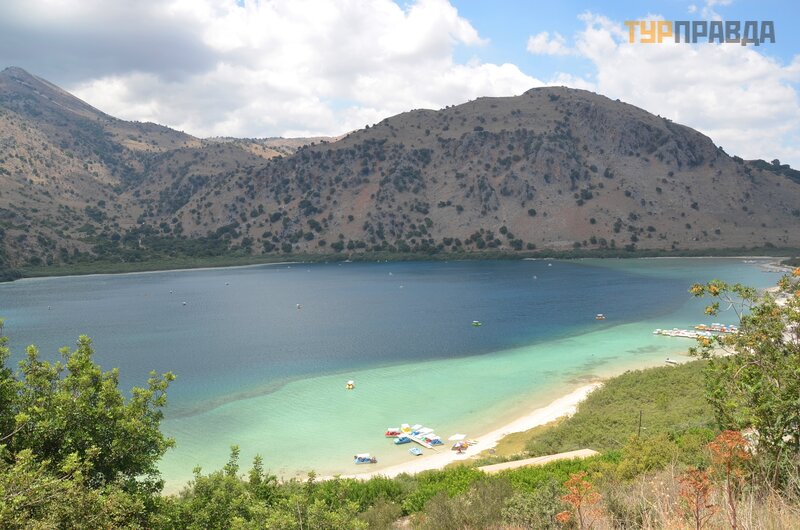 5 km nuo Georgioupolio yra didž iausias gė lo vandens ež eras Kournas. Bū tų kvaila neį merkti kojų į jo vandenį . Kelias į jį vingiuoja kaip gyvatė tarp alyvmedž ių giraič ių . Automobilį galite palikti stovė jimo aikš telė je prie vienos iš prieplaukų , kur galė site iš sinuomoti katamaraną . Keturvietė s kaina 12 eurų už valandą .