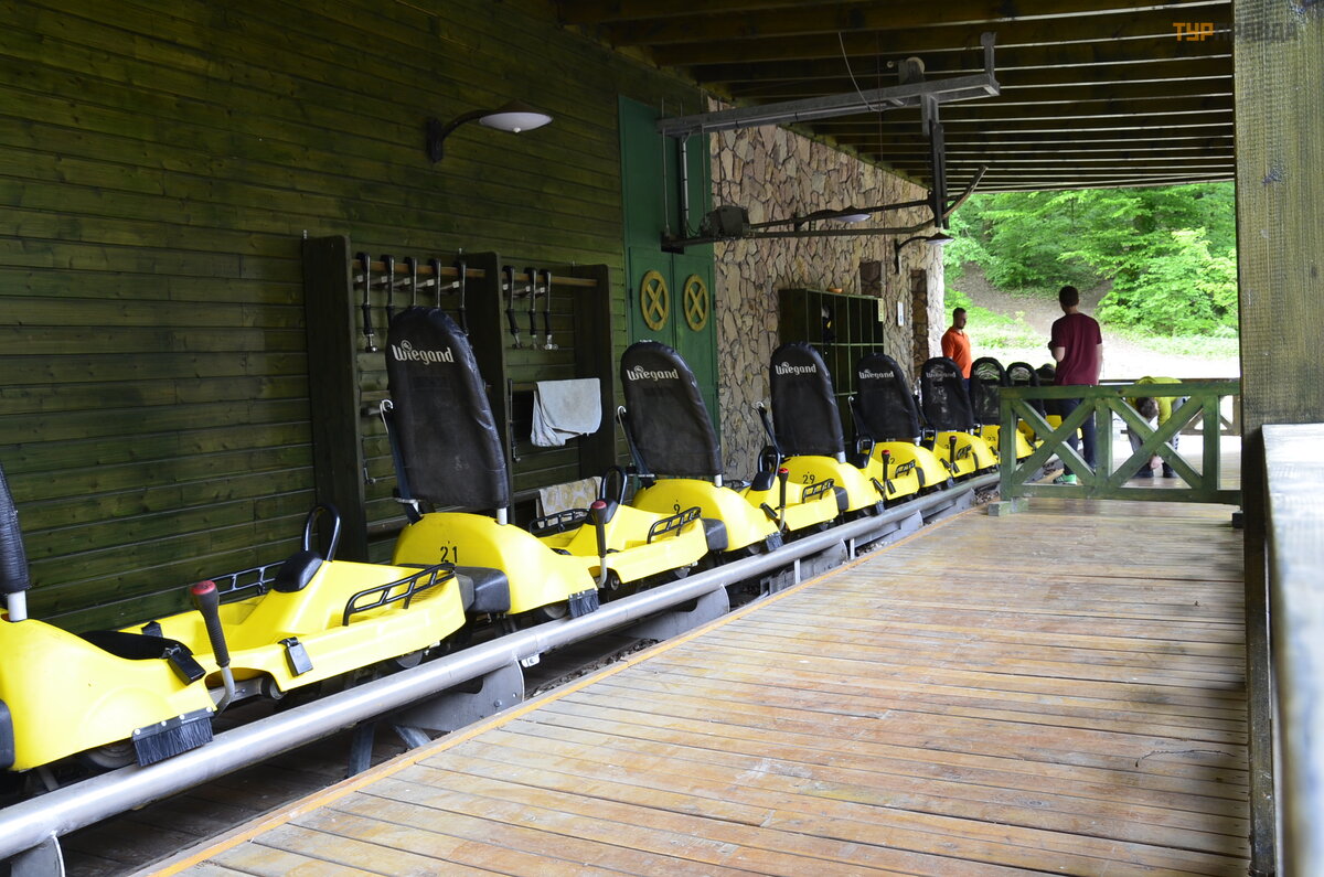 Už.450Ft kvieč iame pasitikrinti savo nervų sistemą . Pirmiausia jū sų boba trosu tempiama į kalvos virš ū nę , o paskui vingiuotu takeliu tarp medž ių skubate ž emyn, konvulsyviai traukdami stabdž ius posū kiuose. Jausmų neį manoma iš reikš ti ž odž iais! Puiku!