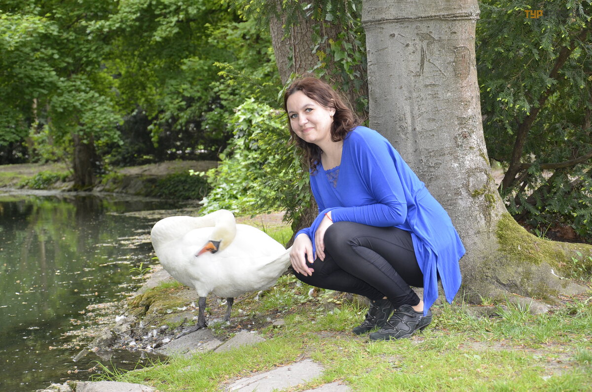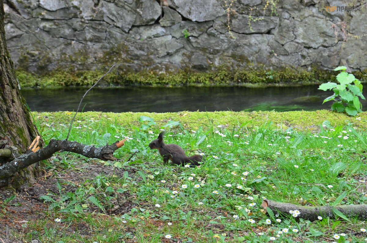 Barlangfurdo vonios? į sikū rusiame parke su nedideliu tvenkiniu, kuriame gulbė plaukiojo viena. Į sidrą sinusios voveraitė s bė giojo tarp medž ių .