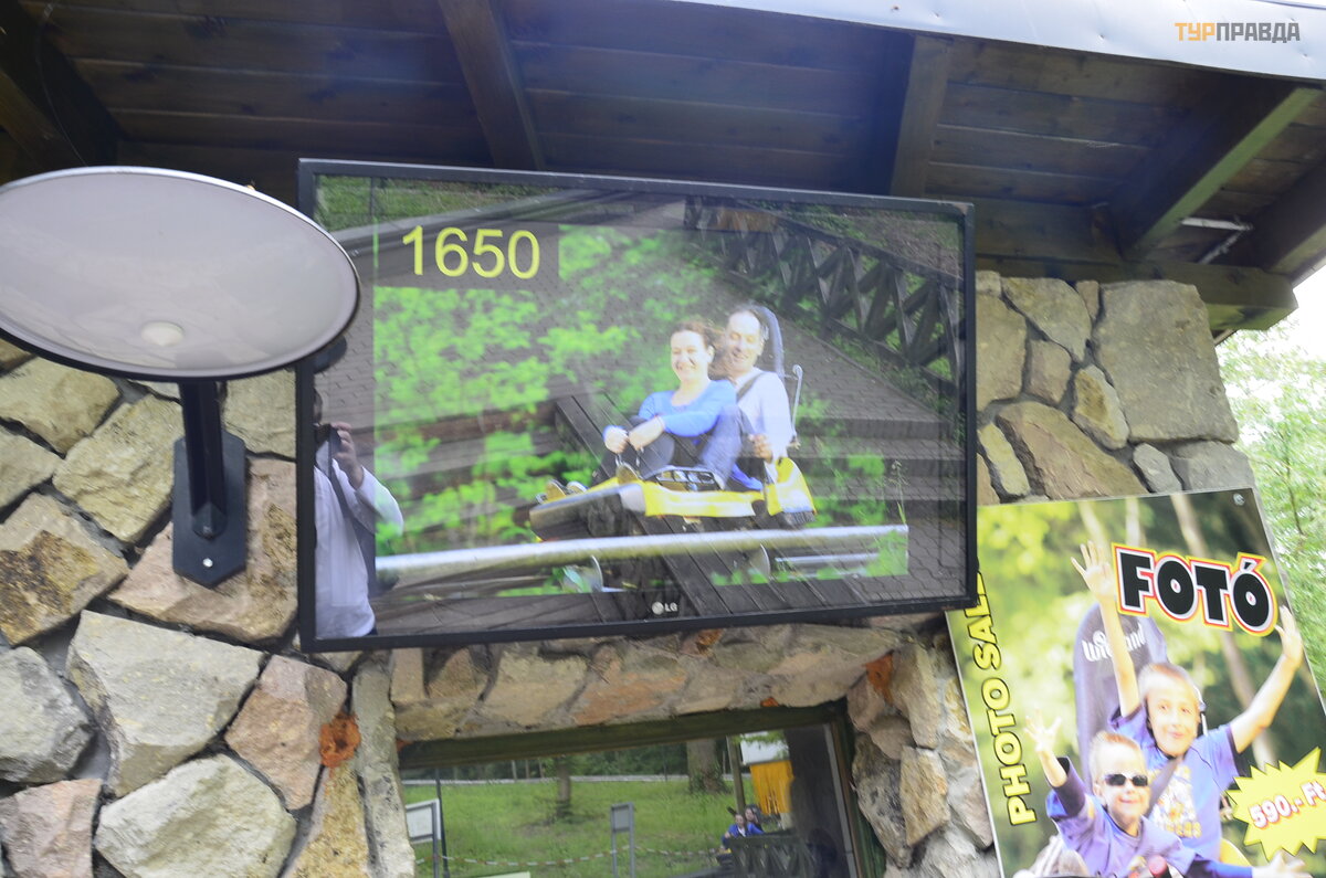 Č ia, parke, yra atrakcija vaikams ir suaugusiems, į kurią nukeliavome dė l laukinių riksmų , sklindanč ių iš miš ko. Tai buvo ekspromtu sukurta bobslė jaus trasa.