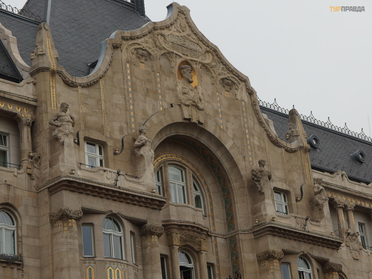 Это одно из самых красивых мест в городе. Не зря было выбрано место расположения дворца. Из центральных окон, украшенных резным рисунком, хорошо видны просторы Дуная и живописный берег. Фасадная часть здания украшена бюстом Томаса Грэшема, работу которого выполнил Эде Тельча.