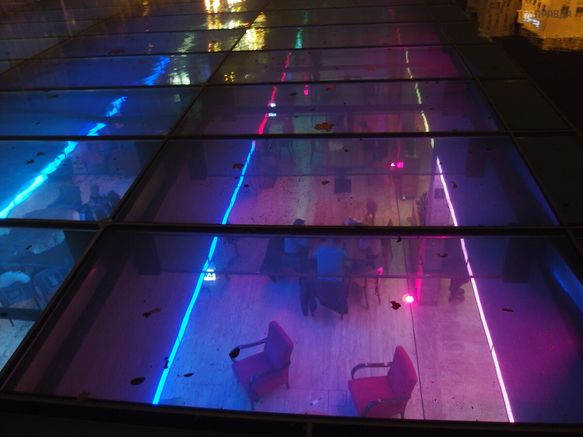 Еще взгляните на клуб "Аквариум", крышей которого выступает фонтан: