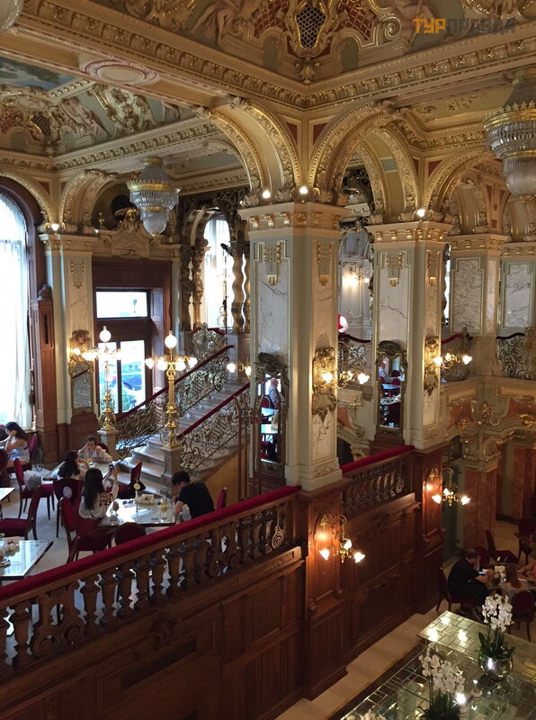 Следующей локацией, которую стоит посмотреть это Oтель New-York Palace (1895, Алайош Хайсманн). Построенный в стиле модерн с элементами неоренессанса. Во все времена это здание было знаменито, прежде всего, своим кафе с великолепными интерьерами. С момента открытия оно стало самым популяр ным местом встреч богатых и знаменитых. Существует легенда, будто в день открытия кто-то из местной богемы выбросил ключ от заведения в Дунай, чтобы оно оставалось открытым и ночью, и днем. Здесь любили бывать многие известные писатели, поэты и журналисты, так что со временем обра зовалось литературное общество. Его чле ны за столиками вели дискуссии, которые затем находили отражение на страницах газет и книг.