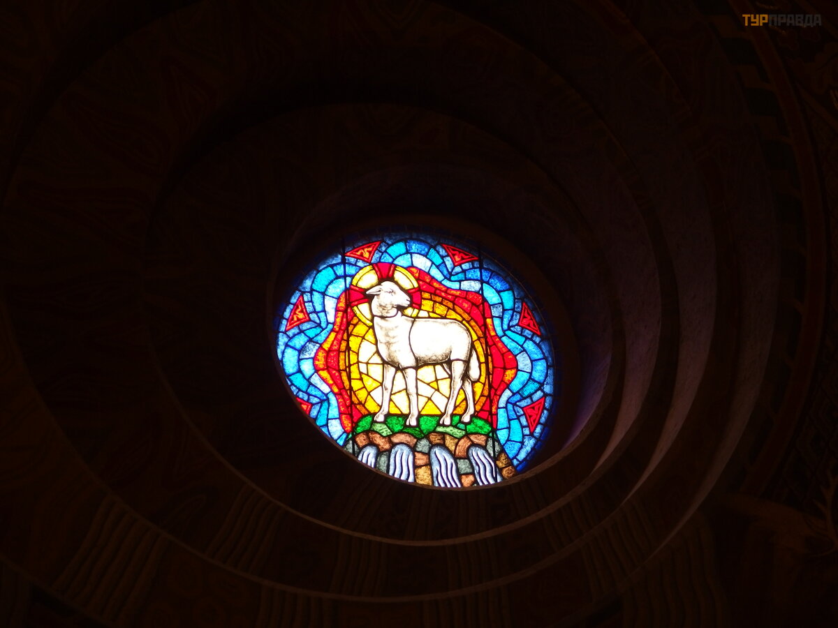 На крышу церкви уложена цветная керамическая черепица наменитого завода « Жолнаи» , придающая ей нарядный и праздничный вид.