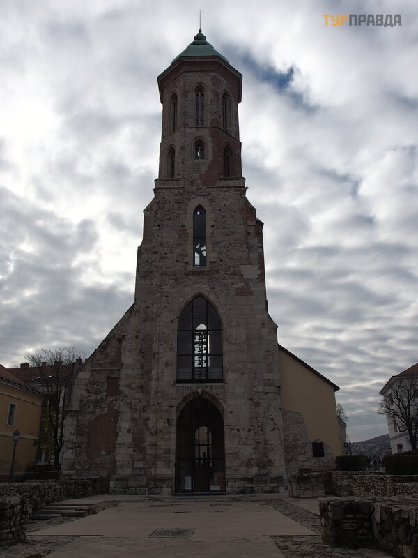 Pirmą ją baž nyč ią XI amž iuje pastatė Steponas Š ventasis. Ji buvo skirta Mergelei Marijai. Per mongolų -totorių invaziją š ventykla buvo sunaikinta. Naują ją š ventyklą , kaip Budos pilies dalį , pastatė karalius Bela IV. Laikui bė gant baž nyč ia buvo atstatyta ir pleč iama. Iki XV amž iaus ji pasiekė savo virš ū nę ir tapo graž iausia gotikine š ventykla š alyje.