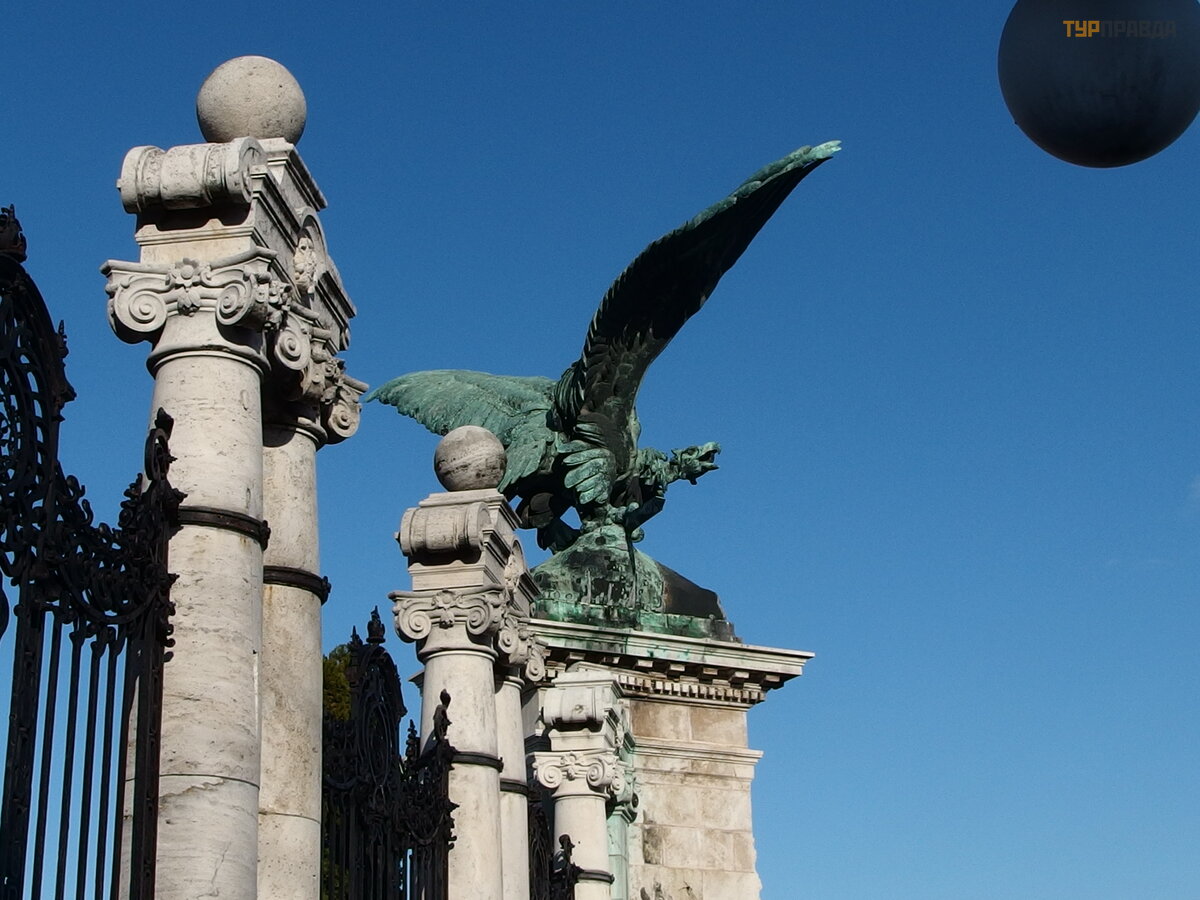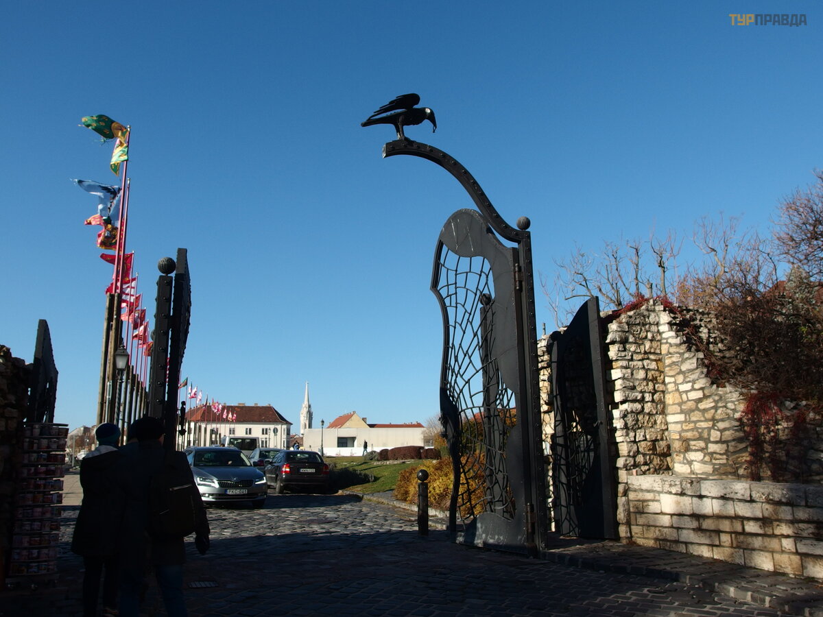 Мудрый ворон – а фактически изображение той же птицы Туруль, только в более современном стиле. Ворон восседает на перегородке ворот Корвина, которые ограничивают территорию Королевского дворца. Интересны как сами ворота, выполненные в форме легкой выкованной паутинки, так и сама птица.