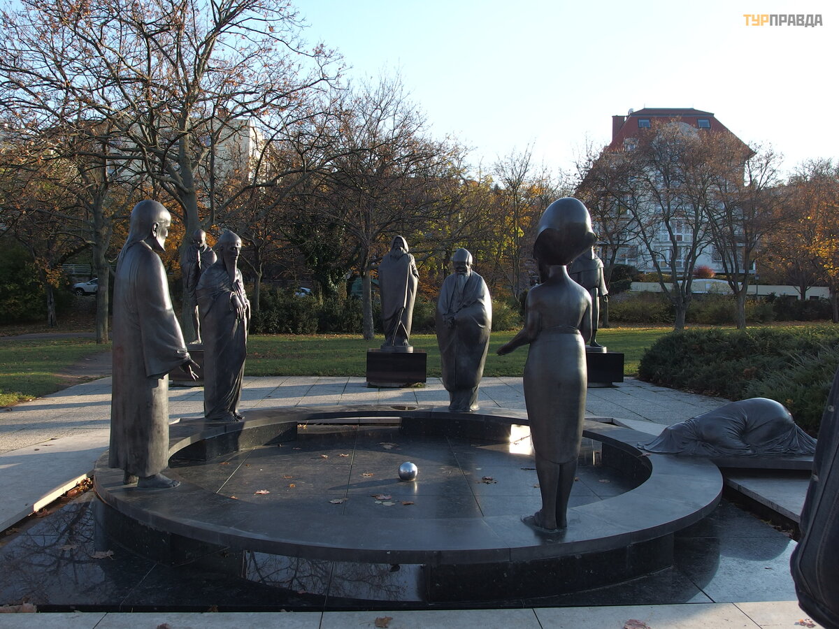 Toliau už lipame 200 metrų ir einame į Filosofų sodą . Filosofų sodas iš tikrų jų yra ne sodas, o skulptū rinė kompozicija. Tai nedidelė platforma, ant kurios sumontuotos aš tuonios bronzinė s skulptū ros. Penki iš jų – Abraomas, Buda, Jė zus Kristus, Lao Tzu ir Echnatonas – pastatyti ant apvalaus pjedestalo, kurio viduryje yra maž as rutuliukas (jis simbolizuoja Ž emę ). Mohatma Gandhi, Daruma (kalbame apie Bodhidharma) ir Pranciš kus Asyž ietis stovi netoliese ant pjedestalo lanko pavidalu. Filosofinis sodas Budapeš te atsirado Gellerto kalno š laite 2001 m. , jį sukū rė vengrų skulptorius Nandoras Vagneris.