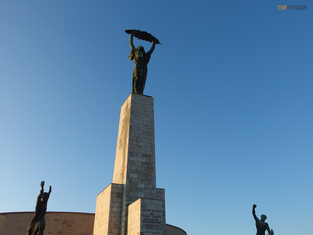 Paž odž iui 50 metrų nuo citadelė s sienų iš kilę s didž iulis paminklas, kuris matomas iš daugelio miesto taš kų . Laisvė s statula (nepainiokite su Niujorko simboliu : )) - iš kilo Gellerto kalno virš ū nė je 1947 m. Iš pradž ių buvo pastatytas bronzinis paminklas, skirtas sovietinė s Raudonosios armijos pajė gų Vengrijos iš vadavimui iš nacių . Skulptū rinė s kompozicijos centre yra 14 metrų bronzinė statula, iš kelianti virš galvos palmė s lapą . Dė l 26 metrų pjedestalo jis toks aukš tas.