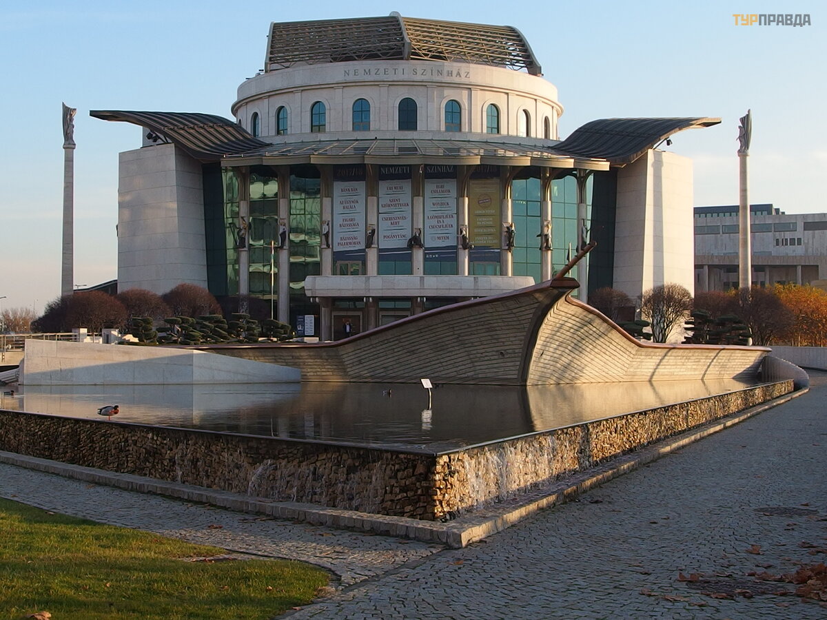 Nacionalinis teatras yra didž iausias ir svarbiausias teatras Vengrijoje. Didingas, elegantiš kas Nacionalinio teatro pastatas iš kilo XXI amž iaus pradž ioje, prieigos prie jo simbolizuoja spiralinę Mespotamijos š ventojo bokš to konstrukciją .