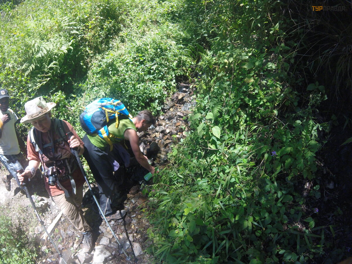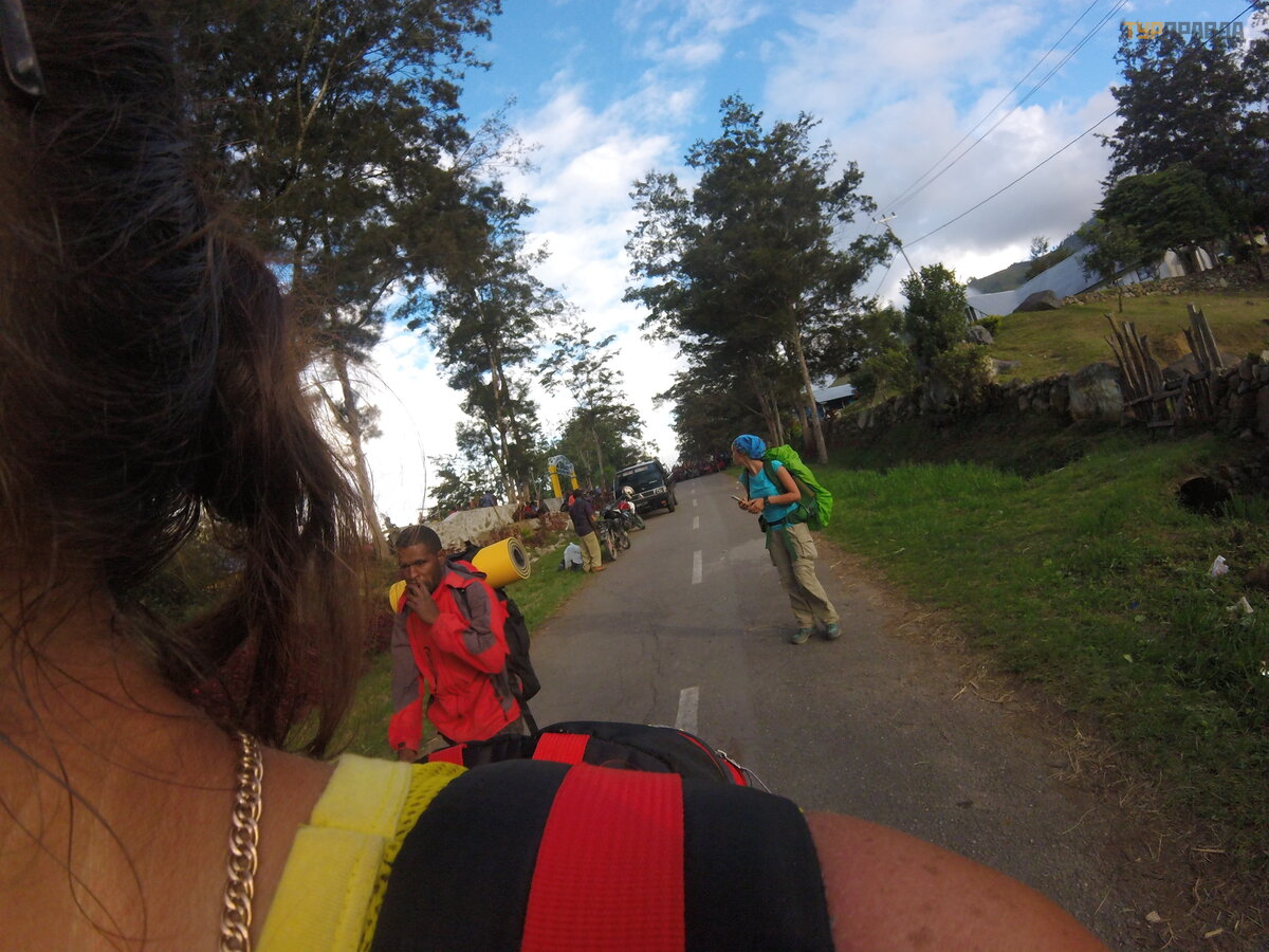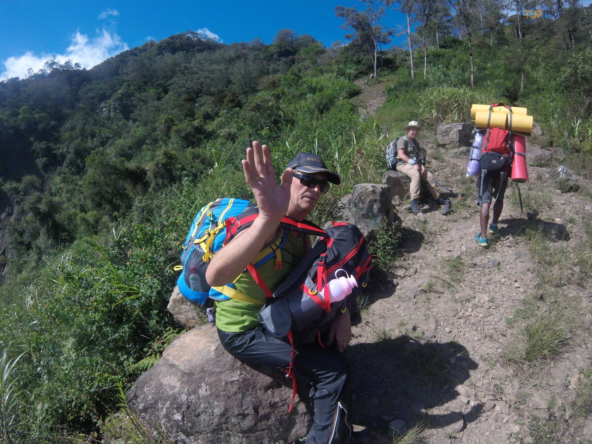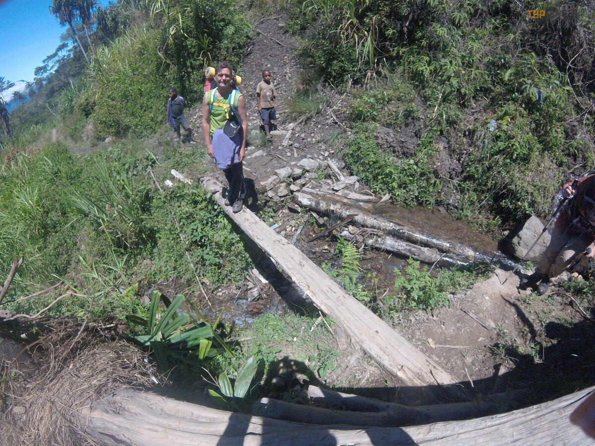 gavo antrą vė ją ! Š ios dienos marš rutas – dž iunglė se, nebebus kaitrios saulė s. Pritrū kome visų geriamojo vandens atsargų , todė l mums davė kariuomenė s filtrus ir kolbas. Vandens galima pasisemti net iš pelkė s, ką mes ir padarė me. Bet filtrų neš ikams nedavė , ir nors jie buvo vietiniai ir pripratę prie savo vandens, pradė jo viduriuoti, mes juos iš gelbė jome savo aktyvintomis anglimis, bet jie buvo iš blyš kę ir iš.3 neš ikų su mū sų atsiliekanč ia grupe liko tik vienas Raimondas . Labai daž nai kalnuose siaurais takeliais sutikdavome vietinius gyventojus, kurie mus visada pasitikdavo už rankos su badi arba bagi, jie eina pė sč iomis į Vameną į turgų maisto produktų ir atgal ant galvų , š iais ož kų takais jie neš tis sunkius pirkinių maiš elius su maistu, su vaikais, su vandeniu ir puodais. Ž iū rė ti juos – vienas malonumas, eini beveik ant plauč ių ir kvė puoji, su specialiais batais, su kombinezonu, o jie basi, o jų kojos kaip plekš tė s, ir č iuo-č o,