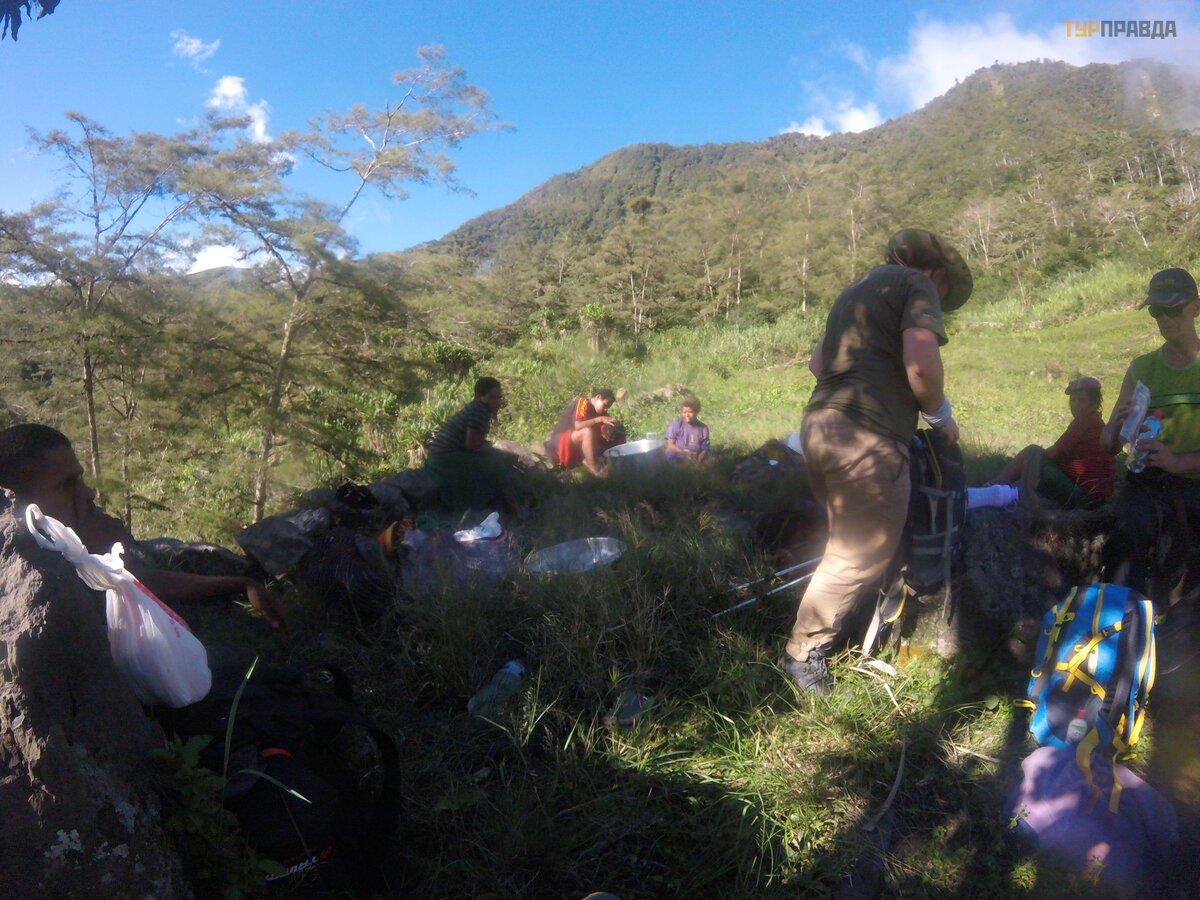 Balyje buvome labai maž a grupė , Natalija iš Australijos, Oksana iš Kijevo ir aš su vyru. Popua prie mū sų prisijungė Alena iš Kijevo ir mū sų gidas Orestas (mū sų kelionė s vadovas, į kvė pė jas ir kankintojas), kuris pora dienų anksč iau atskrido į Popua ir davė mums leidimą pasilikti š alyje, todė l atvykę ne tikė tis bet ko ar ko nors, pasiė mė me kuprines ir persikė lė me į vieš butį .