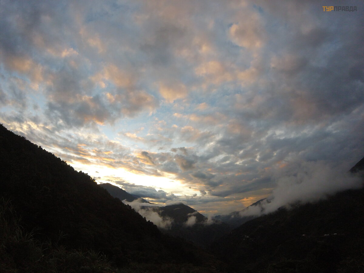 Atvykome antrai nakvynei, 2.2 aukš tis – vaizdas NUOSTABUS! Mes virš debesų ! Neleido statyti palapinių , gal manė , kad mums visiems suteikti tokį baraką yra didž iausia pagarba