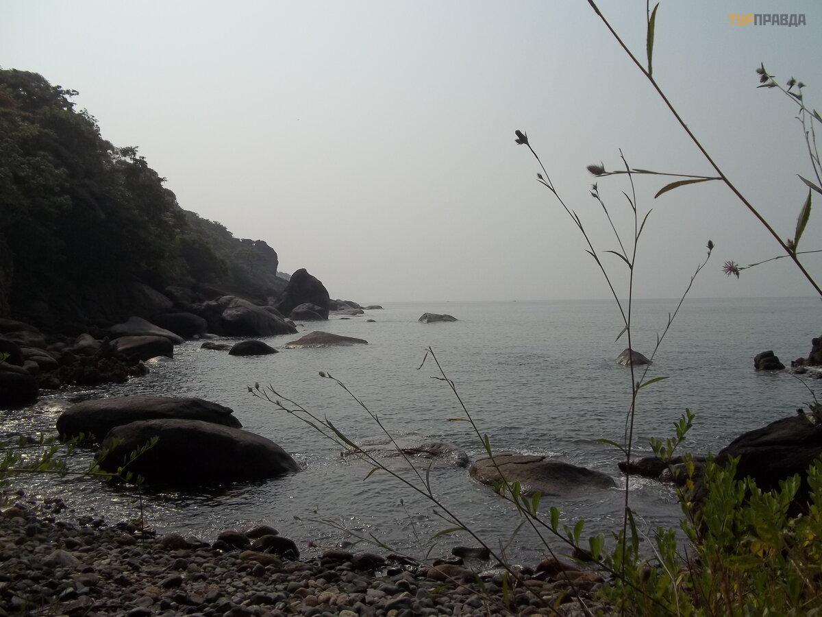Akmenys, kurie visas š ias dienas buvo gana toli nuo kranto, beveik visiš kai kyš o iš vandens. Į juos lipo vietinis gyventojas su maiš u ir plaktuku. Kai jis iš vyko, mes taip pat nusprendė me už lipti paž iū rė ti, ką jis ten kasa. Radome ant uolos auganč ią midiją . Jis skyrė si nuo mū sų turkio spalva palei apvalkalo kraš tą . Bet tada gelbė tojas pradė jo š vilpti ir mojuoti, kad iš eitume. Jis kaž kodė l nenuš vilpė vietinio. Matyt, tarp jo pareigų taip pat buvo apsaugoti duonos gabalė lį vietiniams, nuo tokių kalnakasių kaip mes.