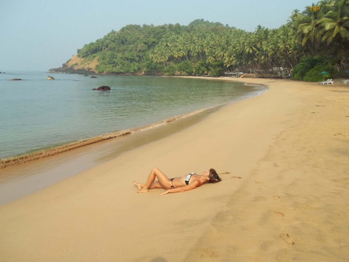 Aš gulė jau ant pilvo, š iek tiek grė biau rankas, o banga siū bavo mane pirmyn ir atgal. Kaaaaaif! Jogai, baigę gimnastiką , taip pat liejosi į paplū dimį . Girdė jau vokieč ių ir anglų kalbas. Tada jie iš ė jo pusryč iauti. Galiausiai nusprendž iau š iek tiek į degti. Pastarosiomis dienomis net nustojau neš ioti skrybė lę , kad veidas galė tų š iek tiek į degti. Tik pati iš kiliausia kū no vieta – nosis – deginosi saulė je. Taip pat bandž iau nusiimti akinius. Viskas nenaudinga! Blyš ki rupū ž ė raudona nosimi! Atsiguliau tiesiai ant smė lio prie vandens.