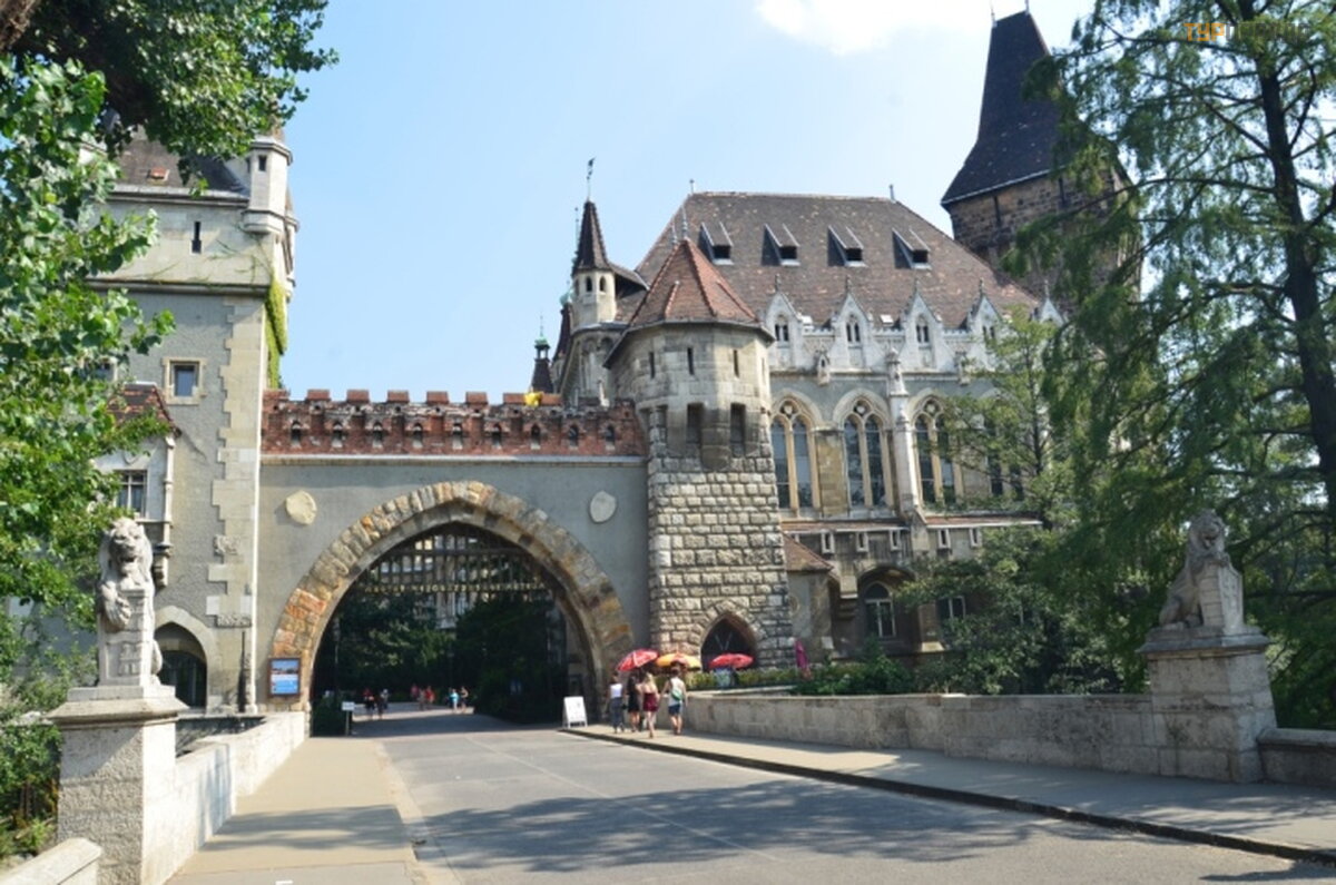 Po pusryč ių automobiliu nuvaž iavome į Varosliget parką , kurio teritorijoje yra Vajdahunyad pilis, Szé chenyi pirtys ir labai į spū dingas zoologijos sodas.