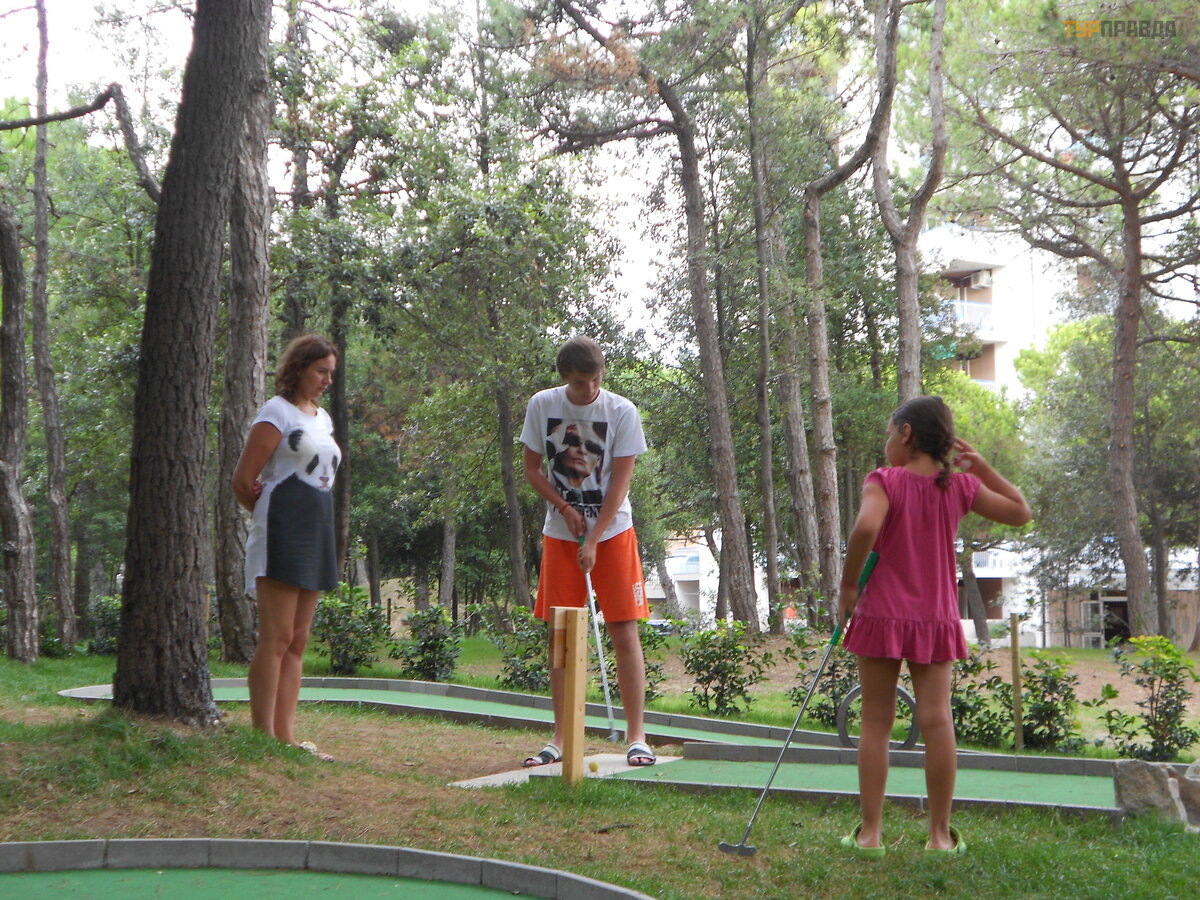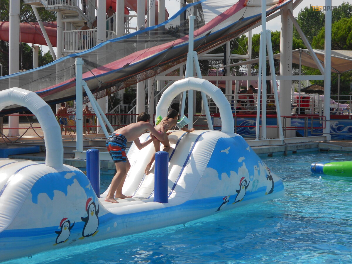 Teritorijoje yra du dideli baseinai ir vienas maž iausiems, č iuož ykla, sū kurinė vonia ir fontanai. Aplink baseinus yra daug gultų , taip pat galite sė dė ti ant ž alios vejos. Natū ralu, kad baseinas yra ta vieta, kur praleisdavome daug laiko per dieną , jei dė l kokių nors priež asč ių nebuvome jū roje. Dienos metu baseine vyksta vandens aerobika, vakariniai pasirodymai, vaikų animacija. Animatoriai puikiai padirbė jo, labai į siminė pasirodymas su ugnimi, taip pat vakaras vaikams, kai vyko į vairū s konkursai, visi vaikai buvo apdovanoti prizais, cukraus vata. Yra mokamas wi-fi, dvirač ių nuoma. Lignano – dviratininkų rojus: takai, tam skirtos juostos, automobilių stovė jimo aikš telė s. Č ia daug dviratininkų .