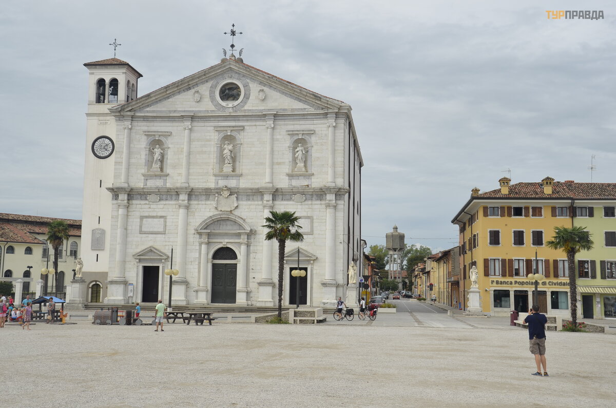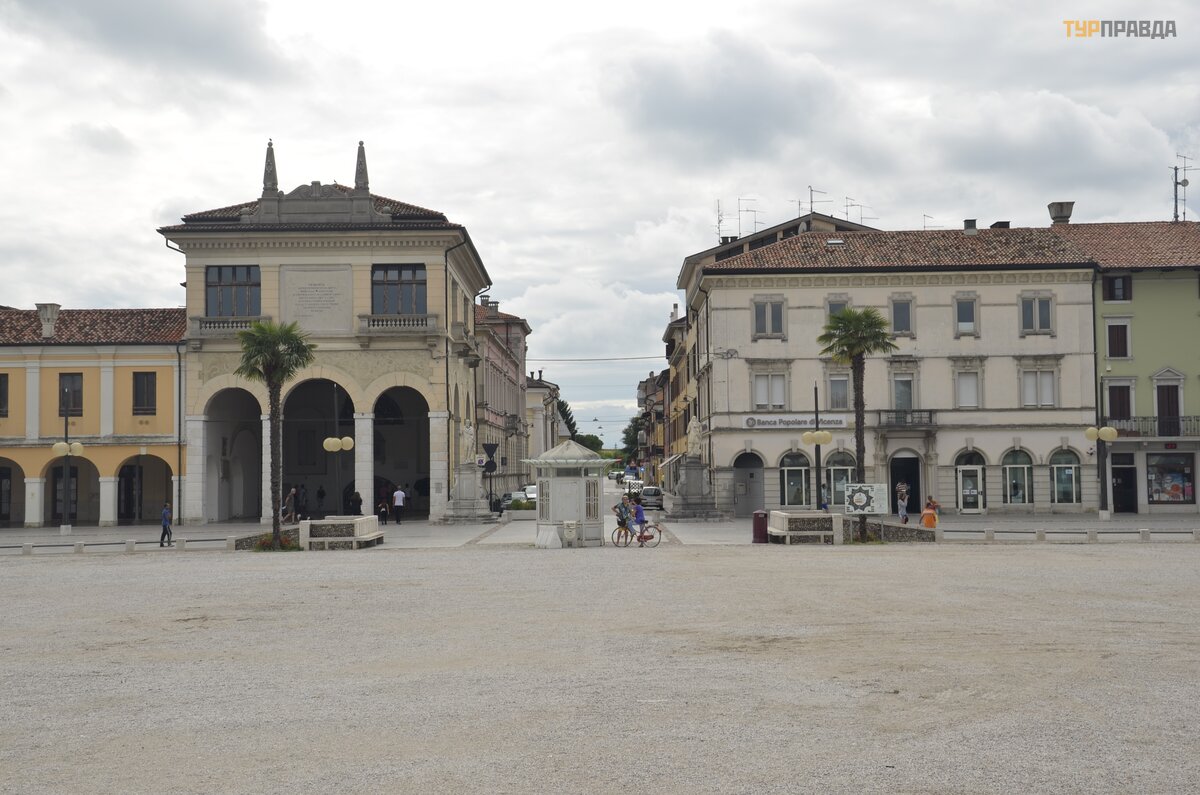 Maš iną palikę prie į važ iavimo į miestą pė sč iomis nuė jome į miesto centrą , esantį aikš tė je Grande.
