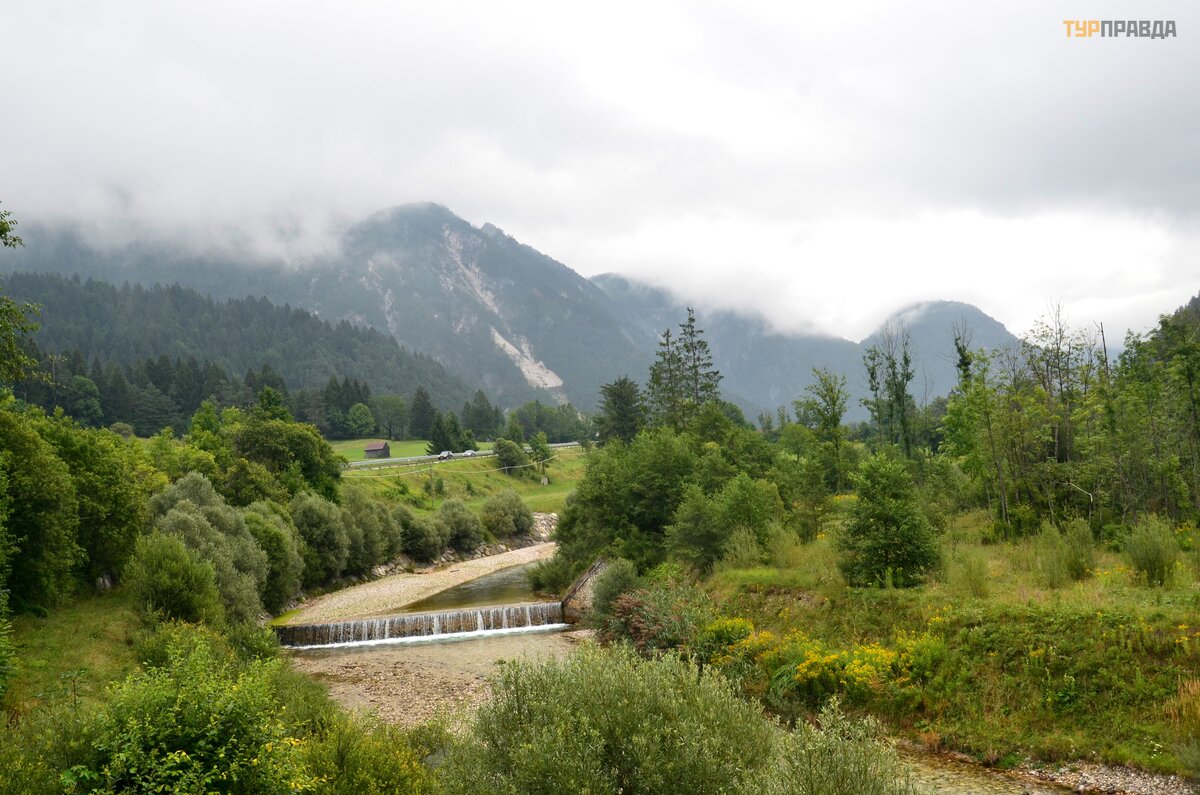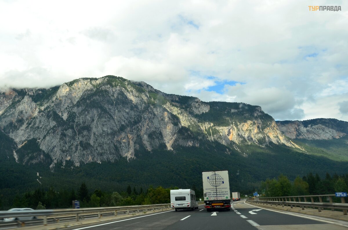 Esame pakeliui į Udinę ir toliau link pasienio su Austrija Klagenfurto kryptimi. Važ iuojame paž į stamais vietiniais keliais. Laiko autobanoje sutaupome 30-40 minuč ių , tač iau už malonumą tenka pakloti apie 10-12 eurų . Horizonte – kalnai, per juos driekiasi mū sų kelias, ir kuo arč iau Austrija, tuo peizaž ai tampa iš raiš kingesni. Alpių stiliaus namai, gerai priž iū rimi fasadai dekoruoti gė lė mis.