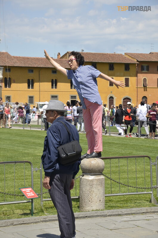 Nuvaž iavome į Pizą , palikome automobilį gatvė je tarp gyvenamų jų rajonų ir nuė jome į Stebuklų aikš tę , kur į sikū rė me ž alioje pievelė je, apsuptoje garsių jų š io miesto simbolių .