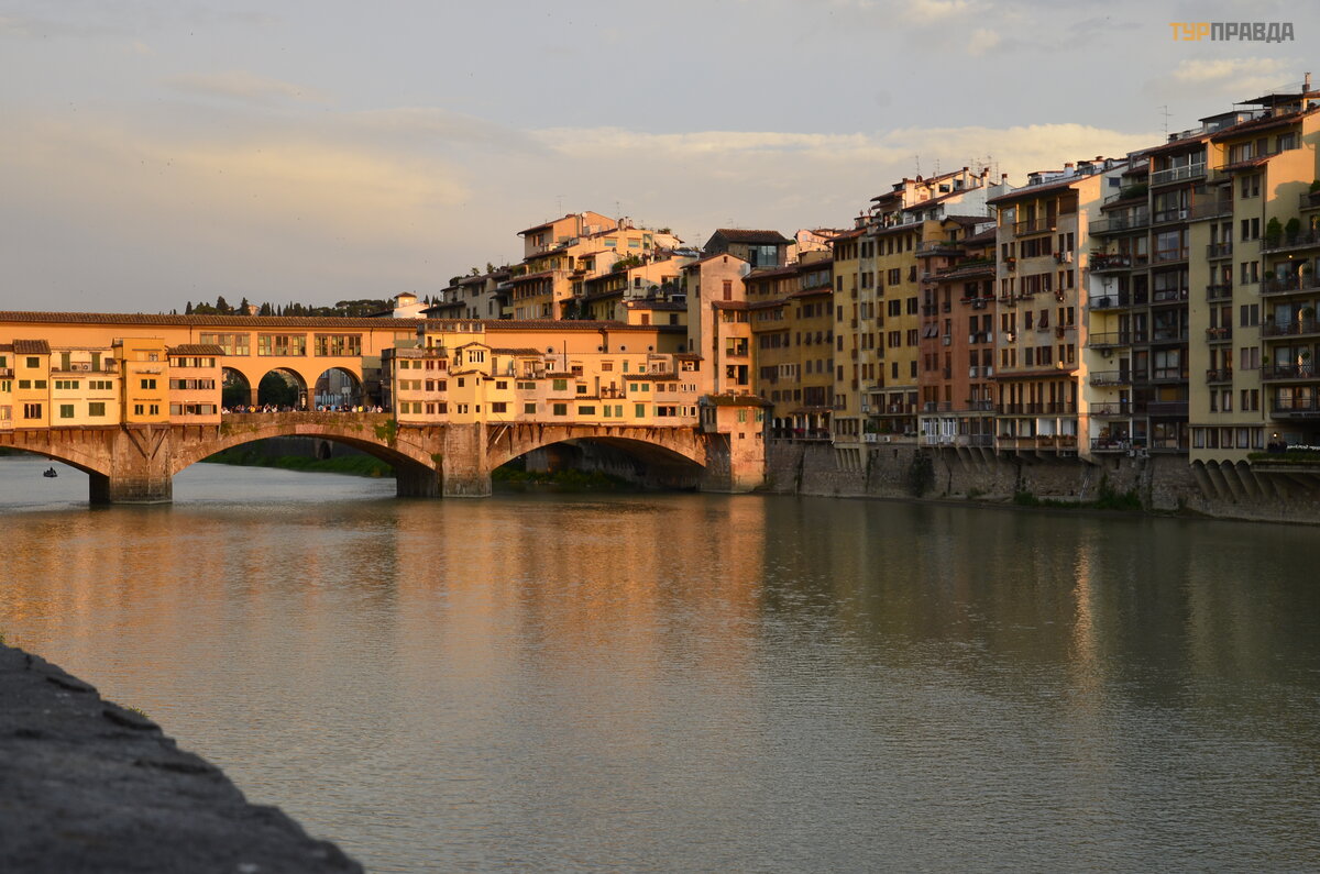 Labai graž us miestas, skirtas ramiems pasivaikš č iojimams ir ekskursijoms. Turistų š iuo metų laiku daug, nes š iame regione pagal mū sų standartus vasara. Ant Ponte Vecchio – kaip metro piko valandomis.