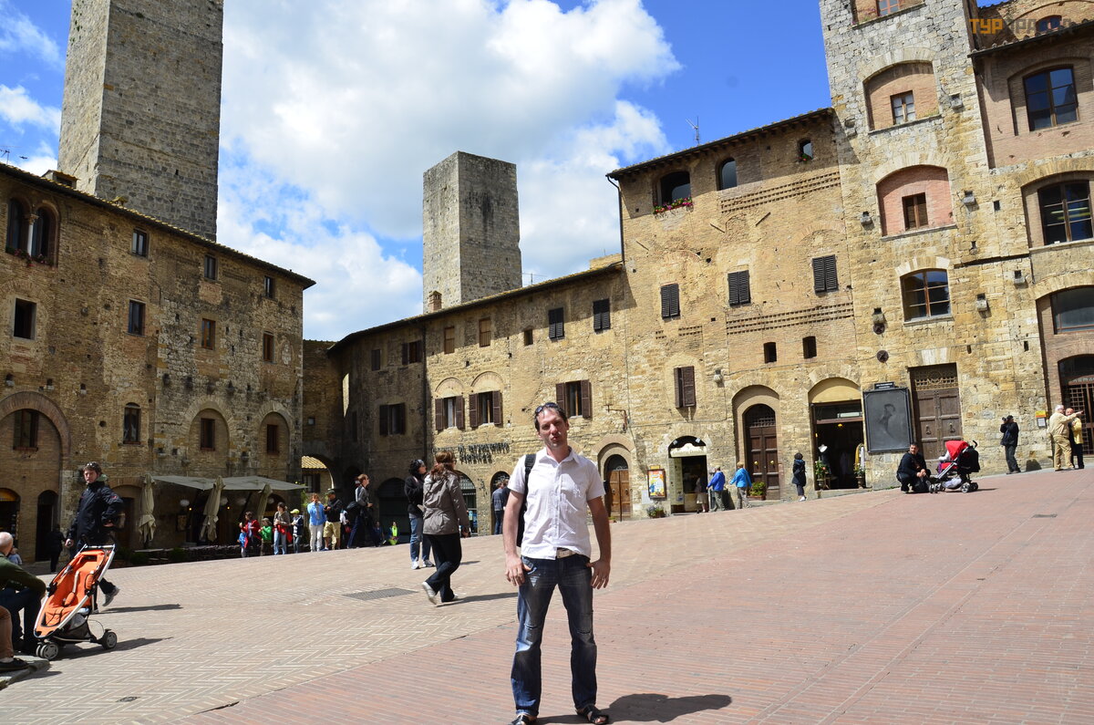 Pagrindinis San Gimignano simbolis, ž inoma, yra keturiolika viduramž ių bokš tų , pastatytų kilmingiausių š eimų , kurios norė jo pabrė ž ti savo socialinę padė tį XI–XIII a. Iš viso, į vairių š altinių duomenimis, buvo pastatyta nuo 70 iki 76 bokš tų , tač iau nedaugelis iš liko iki š ių dienų . Savotiš kas viduramž ių Manhetenas. Aplankė me raudonai rudą Sieną .