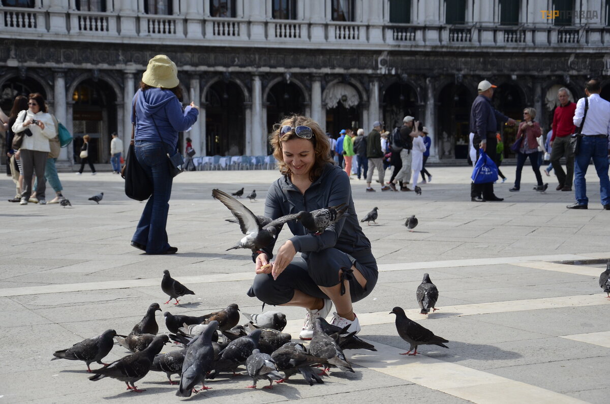 Stumdome tarp turistų minios, š ė rė me balandž ius San Marko saloje, dė l ko sulaukė me teisė saugos pareigū nų pastabos. Tač iau mū sų bendrai apgailestaujame, kad nepatyrė me to malonumo, kuriuo ž avi daugybė atsiliepimų apie Veneciją .