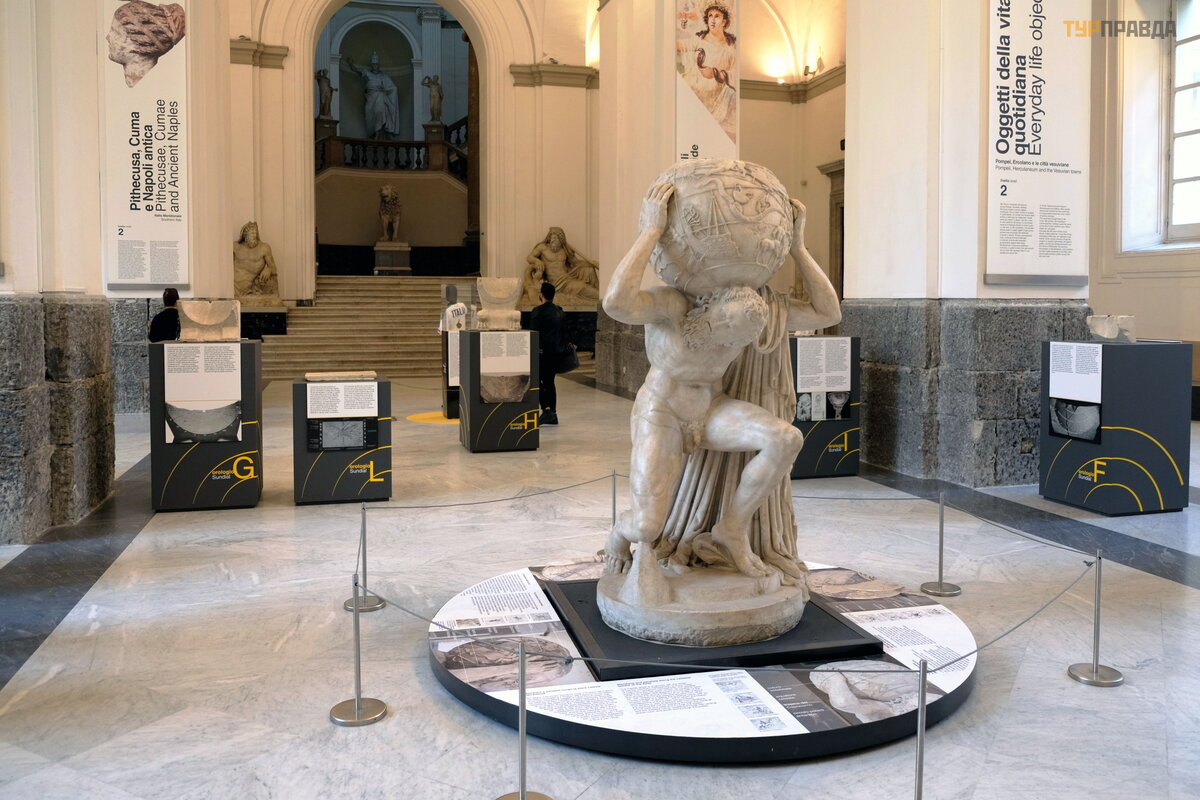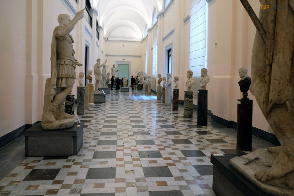 Muziejus didž iulis, jame yra Egipto senienų salė , monetų ir medalių kolekcija, gladiatorių ginklai, keramika iš Kumo ir etruskų nekropolių , palė pė s vazos ir keramika iš Lukanijos ir Kampanijos, radiniai iš Papirų vilos Herkulanijoje. .