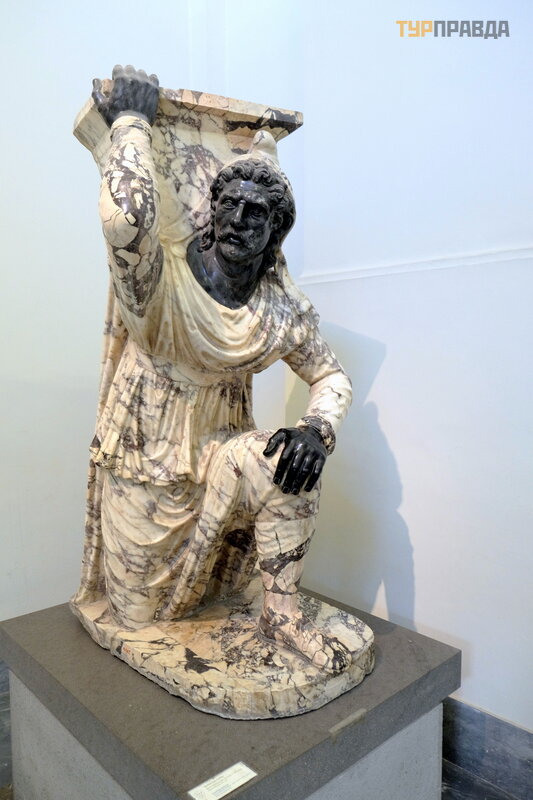 Statulos yra puikios bū klė s, nepaisant vyresnio amž iaus, daugelis jų yra graikų bronzinių statulų kopijos. Pavyzdž iui, garsusis Heraklis iš Farnezė s, III a. e. VI a. pr. Kr. graikiš ko originalo kopija. e.