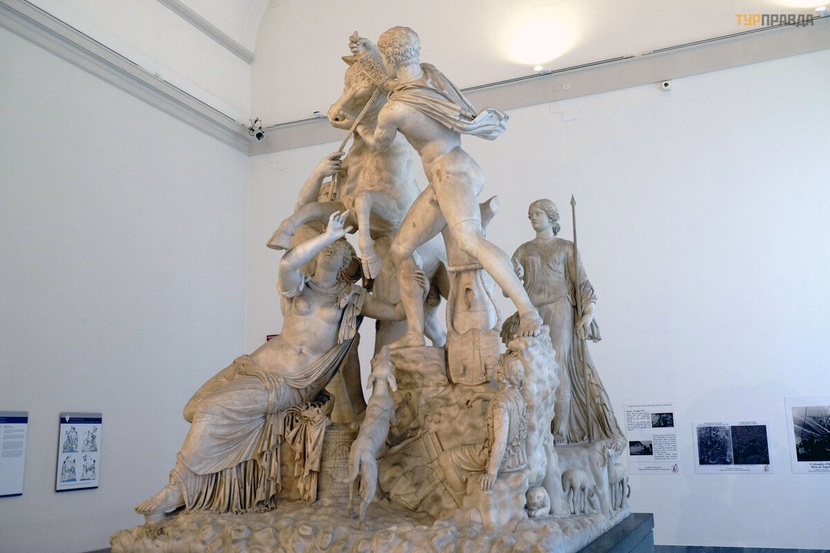 Garsioji kompozicija „Farnese Bull“. Tai graikiš kas originalas nuo 150 m. pr. Kr. e. rastas kasinė jimų metu Karakalos pirtyse 1546. Atkurta vadovaujant Mikelandž elui.