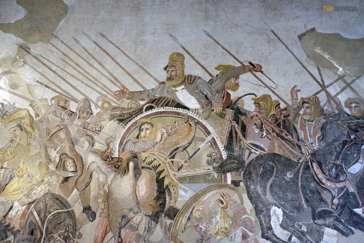 Ž ymiausias – „Aleksandro mozaika“ iš Pompė jos vaizduoja mū š į tarp Aleksandro Makedonieč io ir Persijos karaliaus Darijaus III. Mozaika 100 m. pr. Kr e. dydis 313 x 582