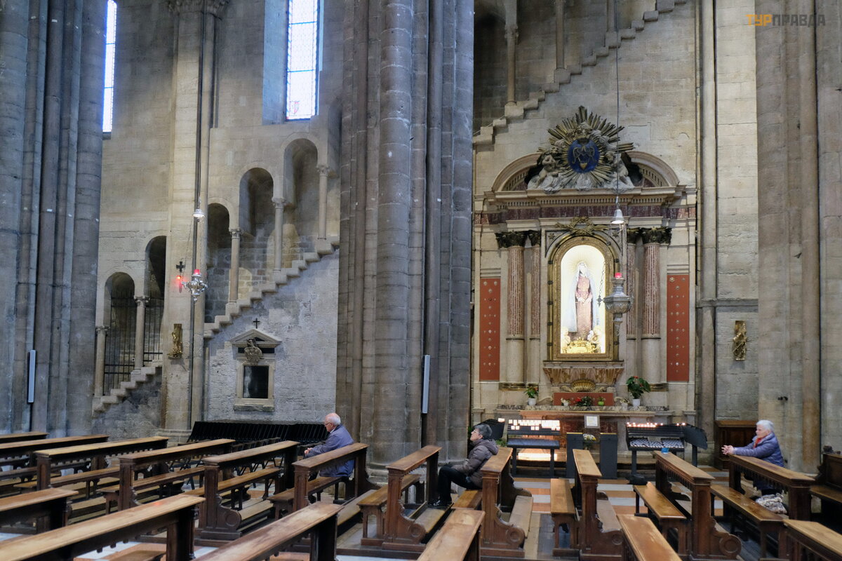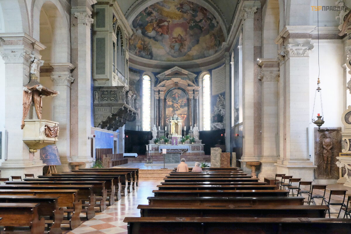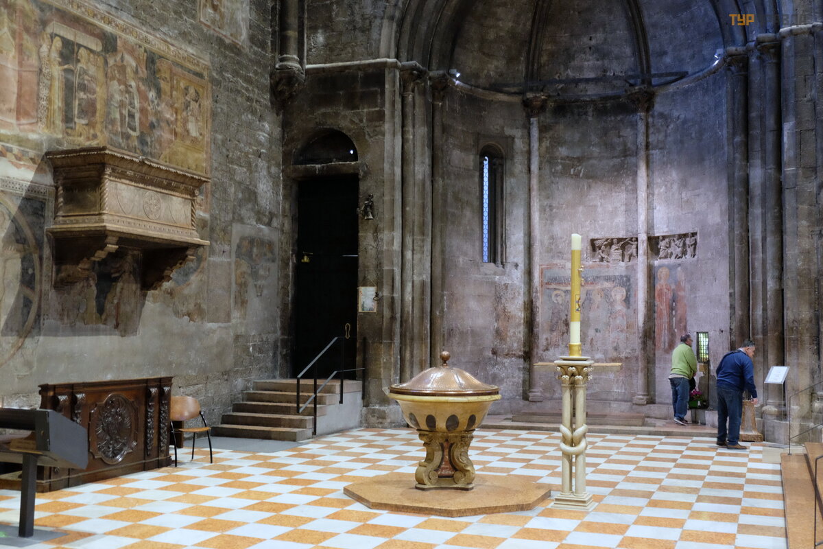 Duomo yra baž nyč ia, skirta Š v. Vigilio (Cattedrale di San Vigilio). Š v. Vigilio – kankinys, IV amž iuje pagonių nuž udytas. Jo vardu pavadinta katedra pradė ta statyti XII-XIII a. yra monumentalus romaninio stiliaus pastatas su siaurais langais, iš kirstais per storas sienas. Į aikš tę patenka iš š ono.