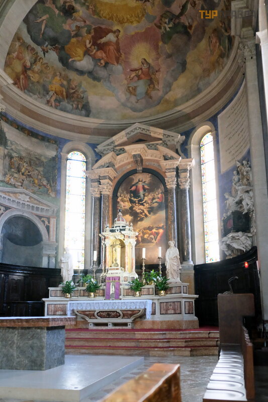 Barokinis ciboriumas (1739 m. ) nustelbia urną su Š v. Vigilijaus relikvijomis.