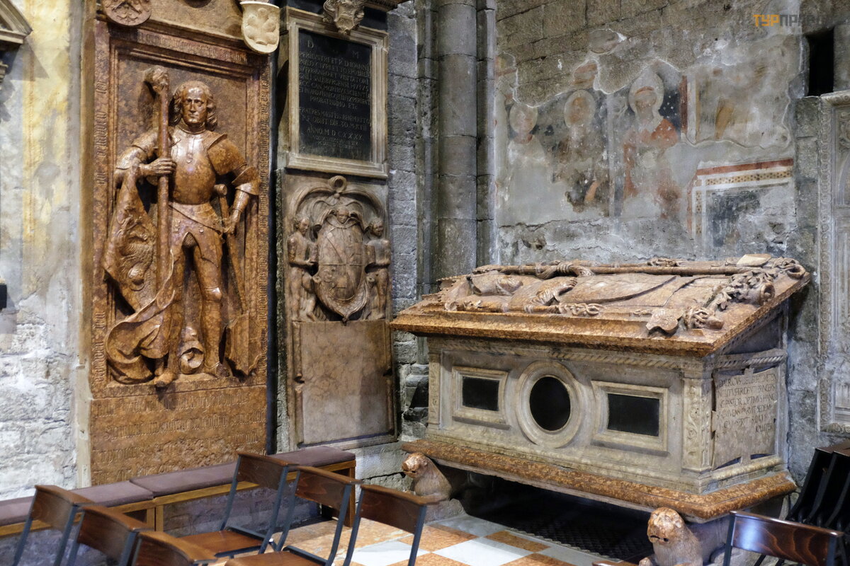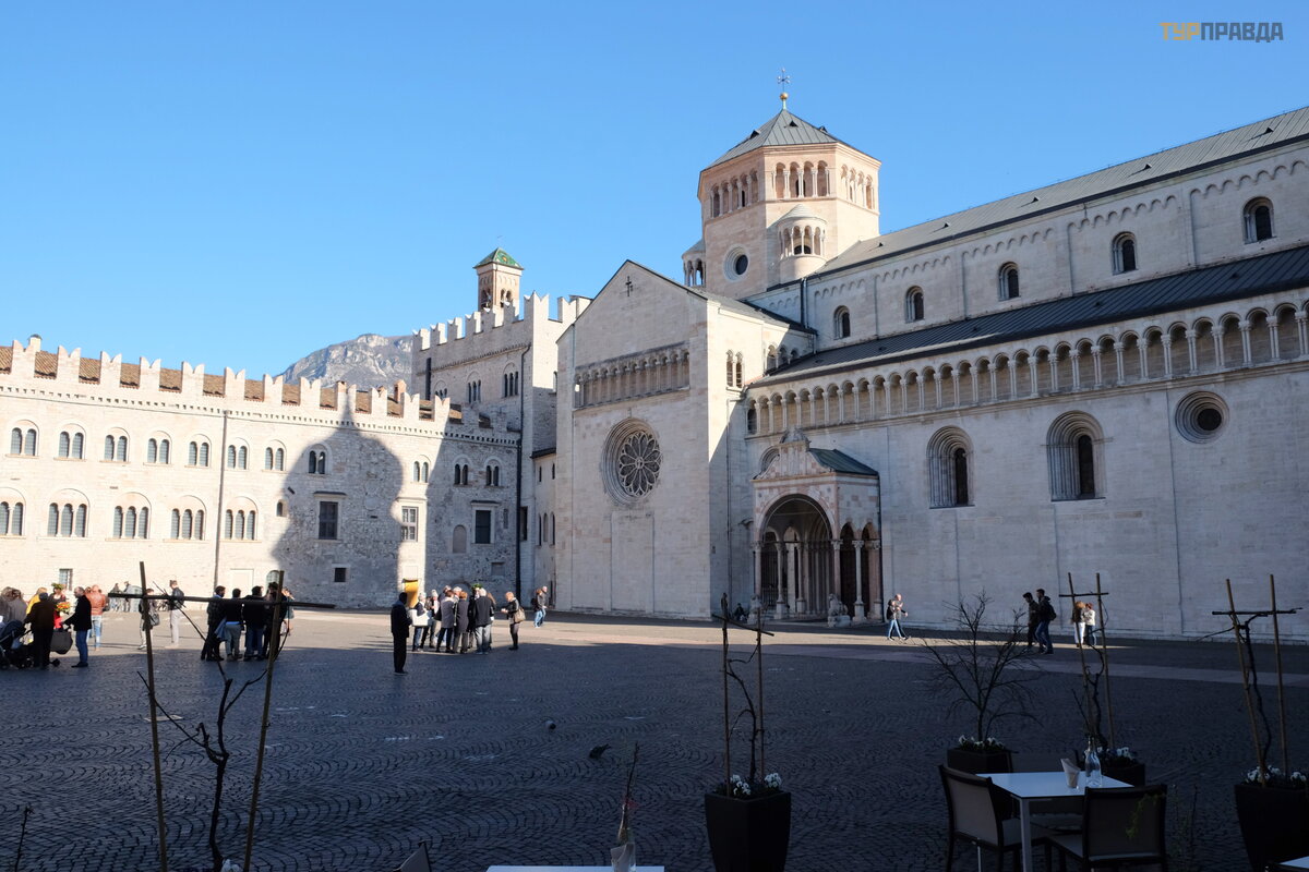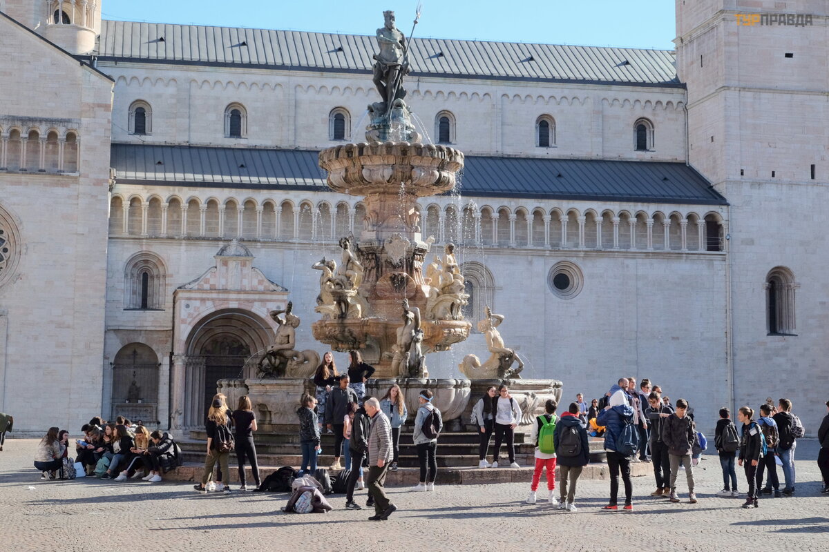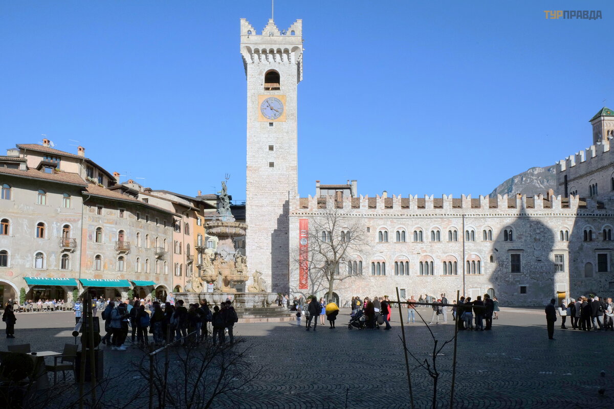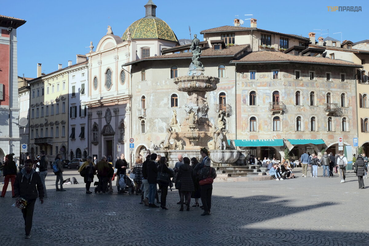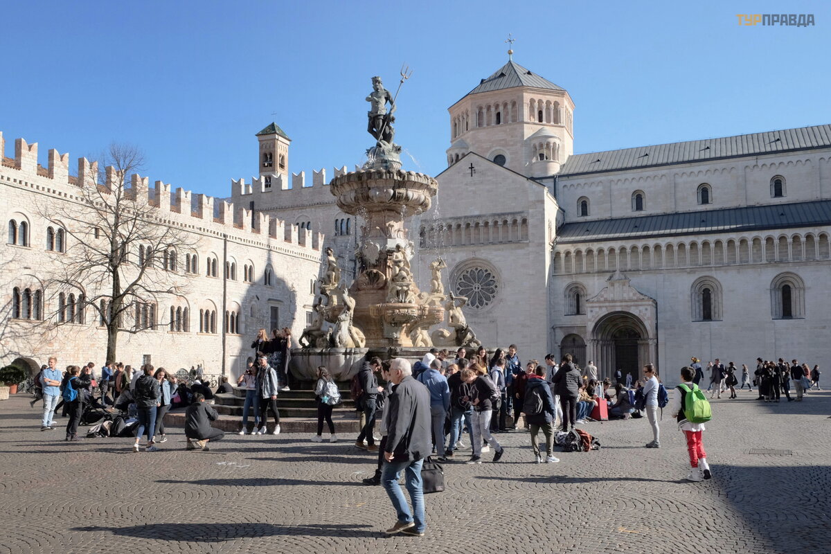 Einame į graž ią ją Duomo aikš tę . Be Š v. Vigilijos katedros, ją į rė mina Palazzo Pretorio ir seni gyvenamieji pastatai. Aikš tė s centre yra Neptū no fontanas.