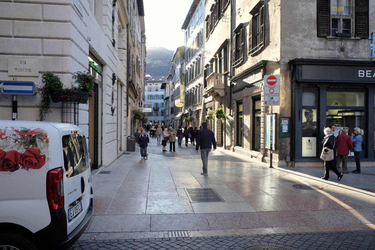Mes taip pat klajojome graž iomis Trento gatvė mis.
